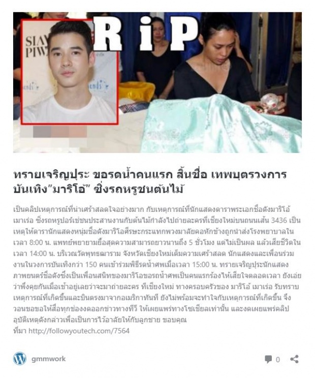 กลายเป็นข่าวที่ทำเอาแฟนคลับตกใจไปตามๆกัน สำหรับพระเอกลูกครึ่งชื่อดัง มาริโอ้ เมาเร่อ หลังจากที่ได้มีการแชร์เรื่องราวจากเพจปลอมว่อนโซเชียลเพื่อเรียกยอดไลก์ ว่าหนุ่มโอ้ได้ขับรถชนต้นไม้ จนเสียชีวิต