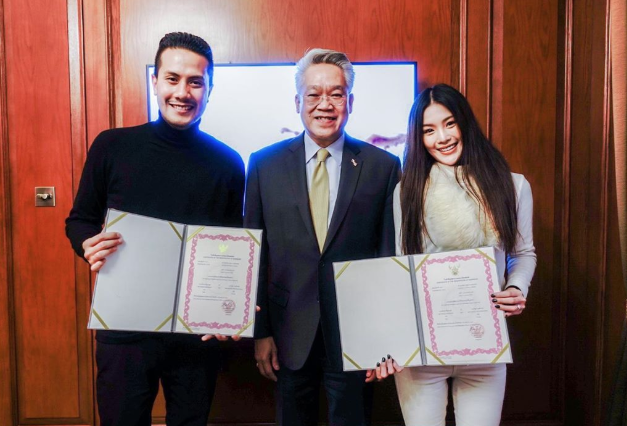 ล่าสุดทั้งคู่จูงมือกันไปจดทะเบียนสมรสเรียบร้อยแล้ว ที่สถานฑูตไทยในกรุงลอนดอนโดยน้องกร โพสต์ภาพประทับใจ พร้อมกับเขียนแคปชั่นว่า นอกจากที่กรได้รับการ Surprise ที่ Tower Bridge แล้ว เราทั้งคู่ยังได้รับเกียรติอย่างสูงจากท่านเอกอัครราชทูตไทยประจำกรุงลอนดอน พณฯท่าน พิษณุ สุวรรณะชฎ มาเป็นนายทะเบียนในการจดทะเบียนสมรส ณ สถานทูตไทยประจำกรุงลอนดอนอีกด้วยค่ะ ทราบจากท่านทูตว่าเราเป็นคู่แรกที่ท่านได้เป็นนายทะเบียนในการจดทะเบียนสมรสให้ พร้อมทั้งอวยพรและมอบของขวัญให้กับเราทั้งคู่นับเป็นเกียรติแก่เราและวงศ์ตระกูลเป็นอย่างมากในโอกาสนี้น้องกรและพี่เป้ในฐานะสามีภรรยาขอขอบคุณทุกๆคนที่มีส่วนเกี่ยวข้อง ท่านเอกอัครราชทูต พี่โจ้ พี่ท้อป พี่อ้อ พยานทั้ง2ของเราพี่บอยและพี่เกด พี่อ่วน พี่ทอม พี่ไมค์ ทีมงานวงมายด์ พี่ๆทุกคนในสถานทูตไทยประจำกรุงลอนดอน และทีมงานสามัคคีทุกๆคนที่ทำให้เราทั้ง2คนได้มาที่นี่และได้มีความทรงจำที่สุดแสนประทับใจครั้งนี้ด้วยค่ะ #bestmomentinlife #couldntbemorehappier #ลอนดอนไปก่อนเดี๋ยวอ่อนเอง #มีสามีแล้วรักสามีมากด้วย