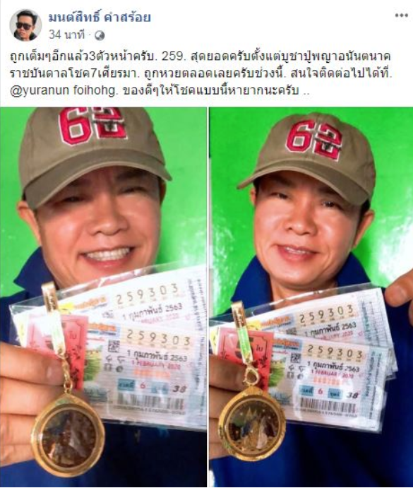 ล่าสุดหลังหวยออก มนต์สิทธิ์ คำสร้อย ได้โพสต์หวยที่ถูกรางวัลพอหอมปากหอมคอ โดย “มนต์สิทธิ์” ได้ถูกรางวัล เลขหน้า 3ตัว 259 จำนวน 7ใบ รวมจำนวน 28,000 บาทพร้อมแคปชั่นว่า “ถูกพอหอมปากหอมคอ ถูกเบาๆชิลๆ พะนะสู”