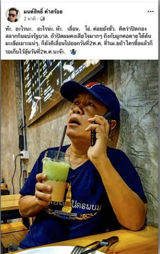มนต์สิทธิ์ คำสร้อย ซึ่งถือเป็นอีกหนึ่งคนที่แฟนๆติดตามช่องทางโซเชียลของเจ้าตัวอย่างมากมาย หลังชอบออกมาโชว์ลอตเตอรี่เลขเด็ดให้แฟนๆได้เสี่ยงโชคตาม โดยล่าสุดหลังมนต์สิทธิ์ได้เห็นข่าวดังกล่าว ก็มีการโพสต์เฟซฐุ๊กส่วนตัวเป็นรูปของตนเองพร้อมแคปชั่นว่า“ห๊ะ. อะไรนะ. อะไรน่ะ. ห๊ะ. เลื่อน. โธ่. ค่อยยังชั่ว. คิดว่าปิดกองสลากกินแบ่งรัฐบาล. ถ้าปิดผมคงเสียใจมากๆ ถึงกับผูกคอตายใต้ต้นมะเขือเผาะแน่ๆ. ก็ยังดีเลื่อนไปออกวันที่2พ.ค. ที่1เม.ยถ้าใครซื้อแล้วก็รอเก็บไว้ลุ้นวันที่2พ.ค.นะจ๊ะ.”