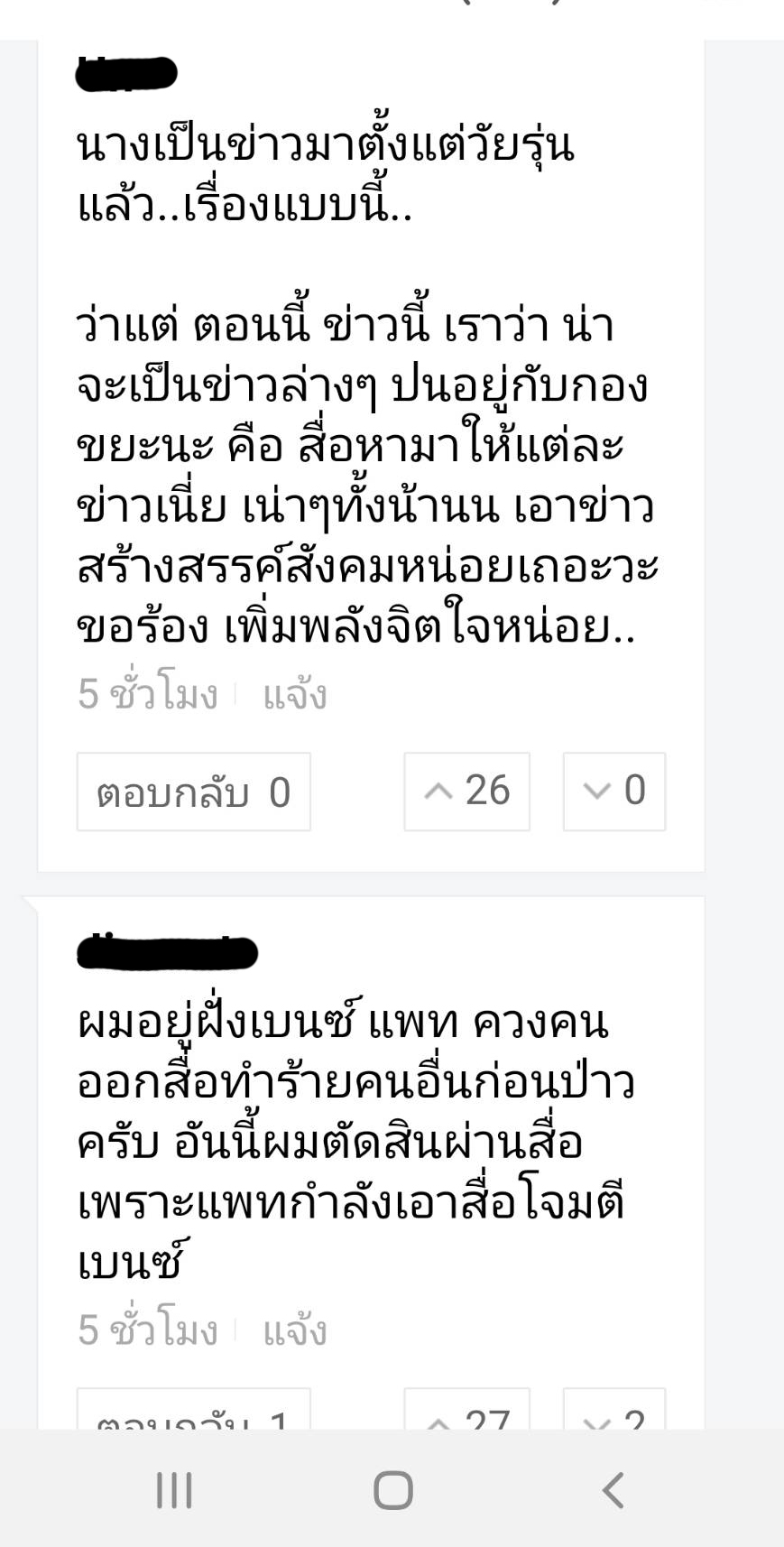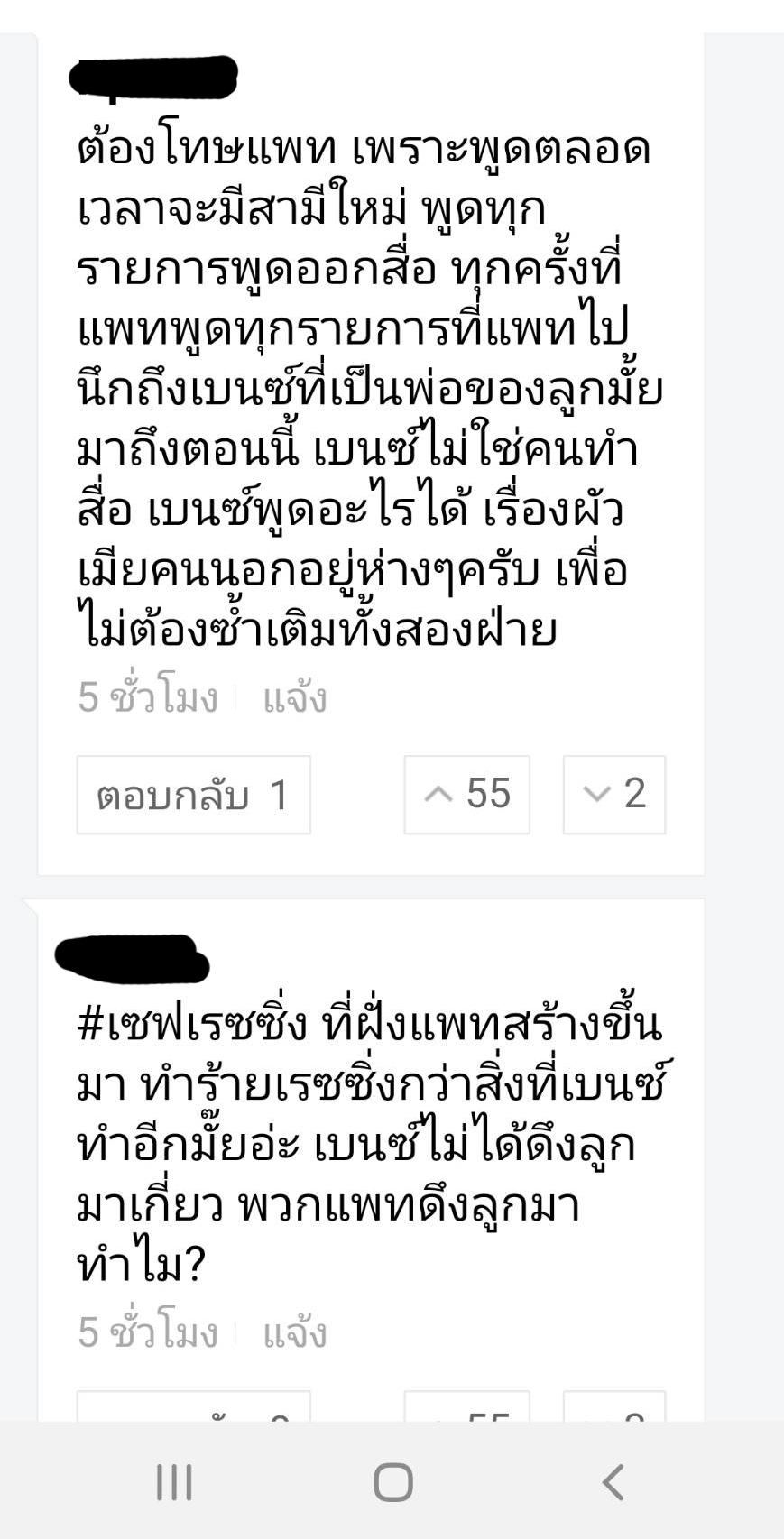 ดราม่าดังกล่าวทำให้ชาวเน็ตเกิดข้องสงสัยว่าเบนว์ ผิดตรงไหน ได้ม้มีคนเข้ามาแสดงความคิดเห็นกันอย่างมากมายส่วนใหญ่เข้ามาถล่มสาวแพท มากกว่า