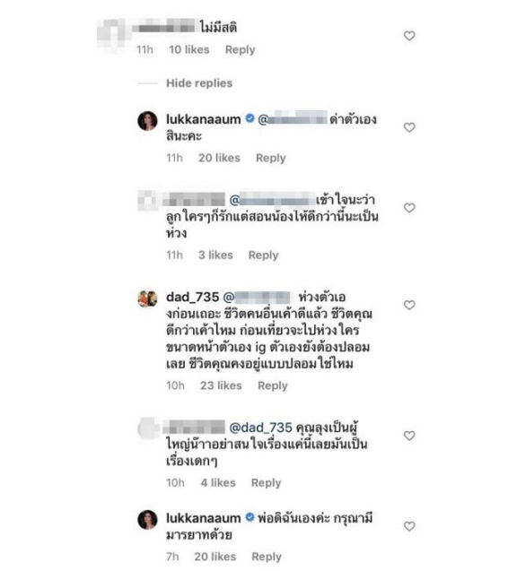 เมื่อสาวอุ้ม โพสต์คลิปลูกสาวตามปกติ แต่กลับมีชาวโซเชียลคนหนึ่งเข้ามาแสดงความคิดเห็นต่อว่าน้องดิสนีย์ว่า “ทุกคลิปเอาแต่ใจมากไม่ได้ดั่งใจก็ร้องกรึ๊ดเห็นอนาคตเลยจะโตมาแบบไหน”ชาวเน็ตคนดังกล่าวก็ยังเข้ามาว่าเด็กน้อยอีกว่า “ไม่มีสติ” งานนี้ครอบครัวอุ้ม ลักขณาเกินจะทนไหว ร้อนถึงคุณตาของน้องดิสนีย์ ที่ต้องเข้ามาตอบคอมเมนต์ว่า “ห่วงตัวเองก่อนเถอะ ชีวิตคนอื่นเค้าดีแล้ว ชีวิตคุณดีกว่าเค้าไหม ก่อนเที่ยวจะไปห่วงใคร ขนาดหน้าตัวเอง ig ตัวเองยังต้องปลอมเลย ชีวิตคุณคงอยู่แบบปลอมใช่ไหม”