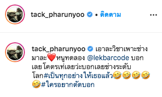 ก่อนหน้านี้ หนุ่ม แทค ภรัณยู โพสต์ไอจี tack_pharunyoo พร้อมกับข้อความ “มีคนถามว่าจริงไหม ใช้ครับจริง เมื่อวานก็พึ่งโอนไปช่วย เดียววันนี้ ผมก็จะโอนช่วยอีกครับ อาจไม่มากครับ 300-500 ครับ ในแฟนเพจครับ “เพราะเวลาโอนสามารถส่งข้อความในการโอนให้เห็นได้ว่าผมโอนกันจริงช่วยจริงๆ” เงินที่โอนก็มาจากการทำงานผมแบ่งให้ครึ่งนึงครับ#ส่วนอาหารขนมที่ผมรีวิวนี้คือช่วยเค้านะครับไม่คิดเงินเลยเหลือผมก็ไปแจกคนที่ไม่มีทาน#หรือสินค้าไหนอยากจ้างรีวิวได้ครับครึ่งนึงผมก็จะเอามาช่วยคนแบบนี้ละครับ❤️❤️❤️ ล่าสุดหนุ่ม แทค ภรัณยู โพสต์ได้อาชีพใหม่อีก ลงรูปพร้อมแคปชั่น”เอาละวิชาเพาะช่าง มาละ❤️หนูทดลอง @lekbarcode บอกเลยโคตรเท่เลยว่ะบอกเลยช่างระดับโลก#เป็นทุกอย่างให้เธอแล้ว🤣🤣🤣🤣🤣#ใครอยากตัดบอก