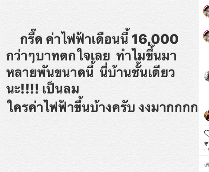 ก่อนหน้านี้มีมาตราการการไฟฟ้าช่วยเหลือค่าไฟ ช่วงโควิด19ให้ขอคืนเงินประกันมิเตอร์ แต่ล่าสุดก็ยังมีเสียงบ่นกันอย่างต่อเนื่องสำหรับค่าน้ำ-ค่าไฟที่พุ่งกระฉูดจนหลายคนช็อค ทั้งๆ ที่รัฐบาลประกาศลดความน้ำค่าไฟให้ประชาชน 3 เปอร์เซ็นต์จากภาวะโควิด-19 เป็นเวลา 3 เดือน พ่อบ้าน “มิก บรมวุฒิ หิรัญยัษฐิติ” ก็โพสต์อินสตาแกรมด้วยรูปที่เป็นข้อความว่า “กรี๊ด ค่าไฟฟ้าเดือนนี้16000 กว่าๆ บาทตกใจเลย ทำไมขึ้นมาหลายพันขนาดนี้ นี่บ้านชั้นเดียวนะ!!!! เป็นลม ใครค่าไฟขึ้นบ้างครับ งงมากกกก” พร้อมข้อความใต้ภาพ “คือขอสอบถามผู้รู้หน่อยนะครับ งงกับค่าไฟฟ้าจริงๆ ครับ บ้านชั้นเดียวขึ้นทีประมาณ 6000 บาทเลยเหรอครับในรอบบิลนี้????