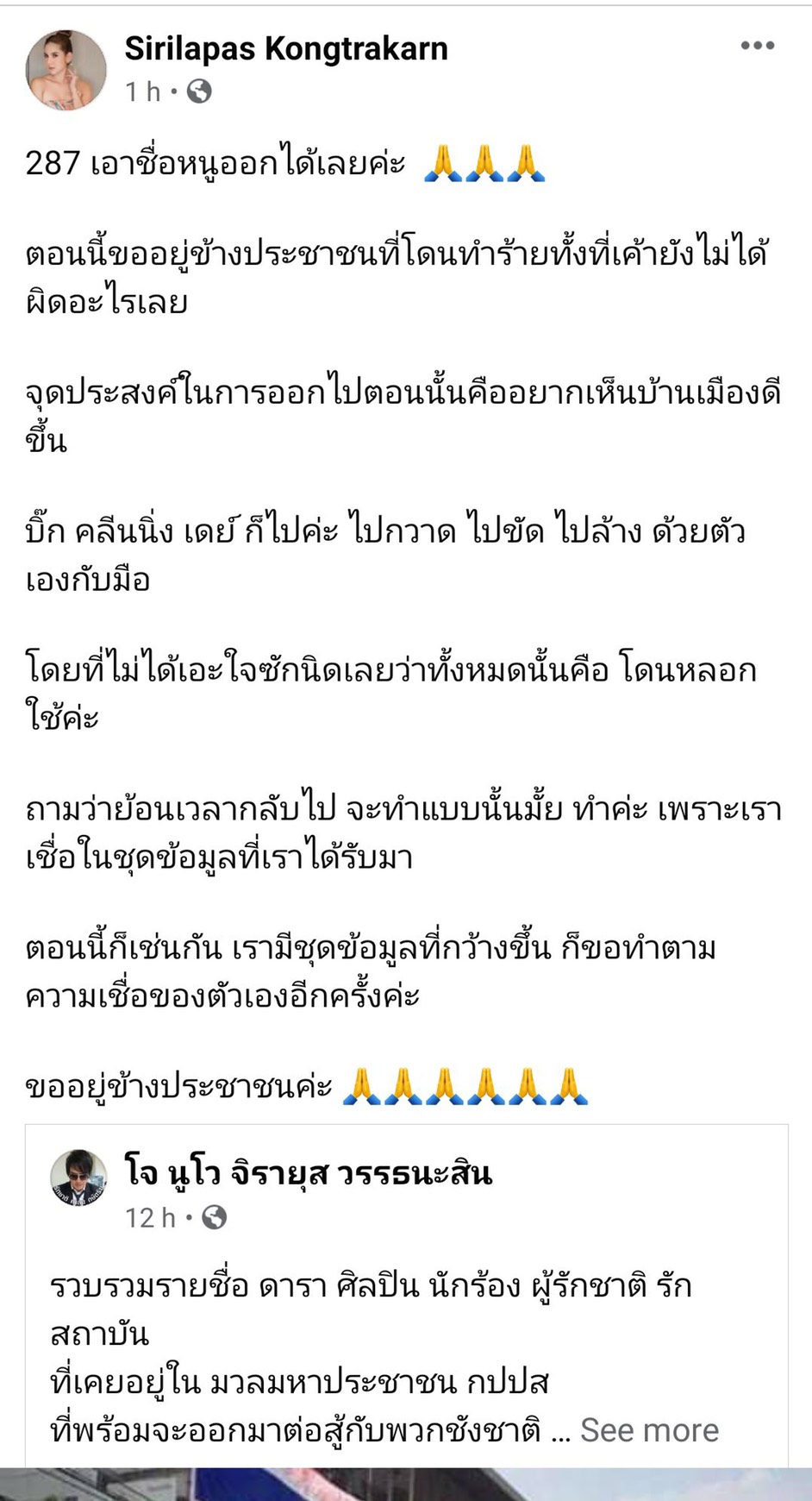หลังจากมีโพสต์ของโจ จิรายุส วรรณสิทธิ หรือ โจ นูโว ที่มีการโพสต์ภาพพร้อมแคปชั่น “การรวบรวมรายชื่อ ดารา ศิลปิน ผู้รักชาติ รักสถาบัน“ ซึ่งหนึ่งในนั้นมีชื่อของ หมิว