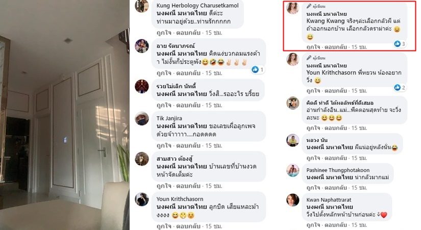 โดยสาวจ๊ะยังบอกอีกว่า “เลขที่บ้าน 59/122 แล้วแต่นะ ผีจะหลอก รึให้โชค ไปลองดู” ขณะที่แฟนคลับเข้ามาคอมเมนต์ขนลุกไปด้วยพร้อมให้กำลังใจจำนวนมาก