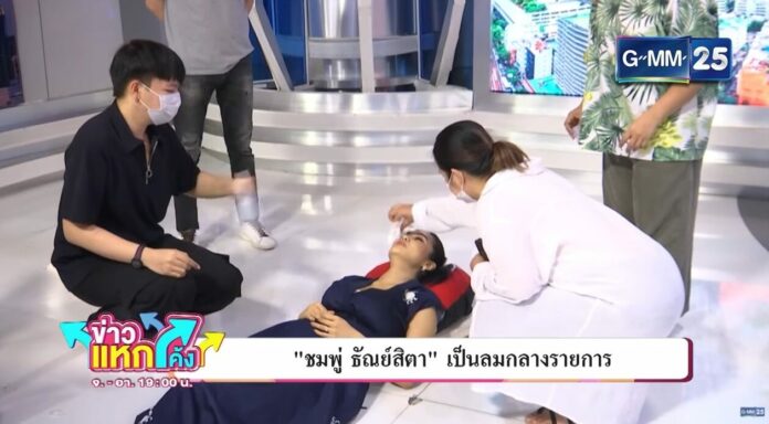 เกือบไม่รอดหายใจไม่ออกทำเอาตกใจเลย – ชมพู่ ธัณย์สิตา หรือ ชมพู่ ก่อนบ่าย ถึงกับเป็นลมกลางรายการ ขณะทำหน้าที่พิธีกรในรายการสด one รับแขก ช่วงเช้าวันที่ 3 พ.ค.64 ด้วยขณะเกิดเหตุสวมหน้ากากอนามัย ทำให้ทีมงานไม่ทันเห็นสีหน้า แต่เห็นมีอาการเหมือนโยกเก้าอี้โพเดียมจัดรายการคิดว่าเป็นมุข