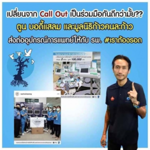โดยใน Social Media พบว่ามีการผุดแคมเปญเปลี่ยนจาก Call Out เป็นร่วมมือกันดีกว่าไหม๊?? #เราต้องรอด ทำให้เกิดการแชร์ต่อๆกันในโลกออนไลน์ อาทิภาพ นายอทิวราห์ คงมาลัย หรือ ตูน บอดี้แสลม ที่ถูกกระแสเรียกร้องอย่างหนักก่อนหน้านี้ให้ออกมาพูดวิพากษ์วิจารณ์รัฐบาลแต่ตรงกันข้าม ตูน ได้ร่วมกับมูลนิธิก้าวคนละก้าวออกมาบริจาคอุปกรณ์การแพทย์ให้กับโรงพยาบาลแทน