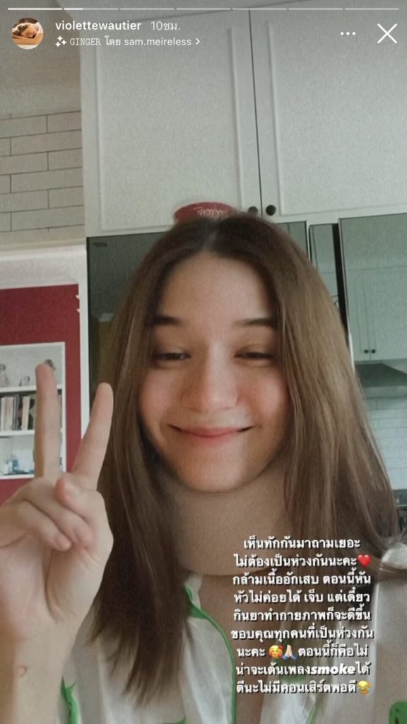 ขอบคุณทุกคนที่เป็นห่วงกันนะคะ ตอนนี้ก็คือไม่น่าจะเต้นเพลง smoke ได้ ดีนะไม่มีคอนเสิร์ตพอดี”