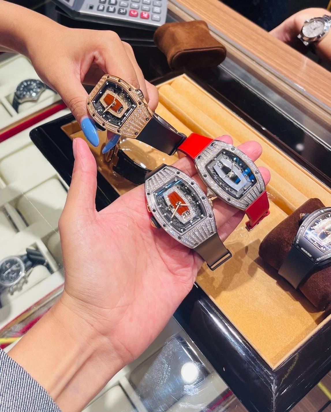 ต่อด้วยนาฬิกาแบรนด์ดังในตำนาน อย่าง Richard Mill ที่แม่นางฟาดทีเดียว 2-3เรือน โอ้ยยยย!!! เรือนละ 11 ล้านเบาๆจ้า อะไรจะน่าอิจฉาแม่ขนาดนี้