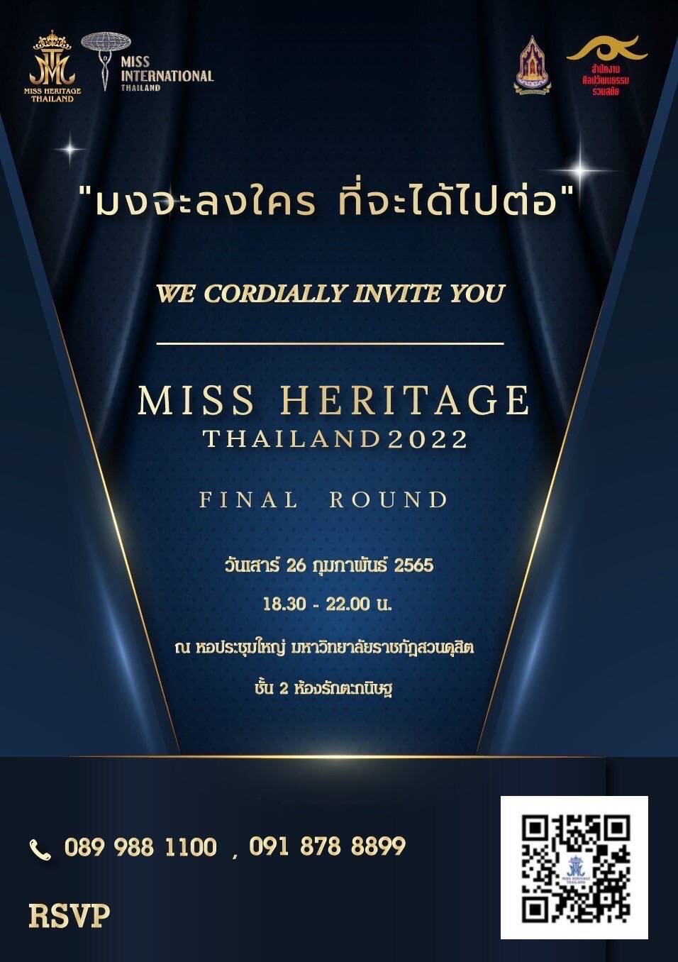 นอกจากนี้ เวที Miss Heritage Thailand เป็นเวทีที่แตกต่างกับเวทีจัดประกวดนางงามทั่ว ๆ ไป เพราะเป็นเวทีที่  “คัดเข้าไม่คัดออก “  ตัวแทนของแต่ละจังหวัด จะเป็นผู้นำของจังหวัดตน ดำรงตำแหน่ง Miss Heritage Thailand นำร่องการท่องเที่ยววัฒนธรรมกับนางงามไทย ทำหน้าที่เป็น Influencer นำเสนอทุกมิติในทุกช่องทาง ผ่านทาง Website และ Social Media เพื่อสร้างกระแสนิยมให้คนรุ่นใหม่ได้เห็นคุณค่าของวัฒนธรรมไทย