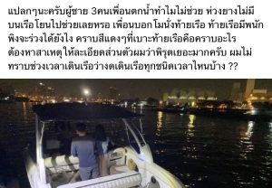 “เริ่มแปลกๆตอนแม่แตงโมรับสาย แล้วมีคนให้แม่ไปอีกที่ เดี๋ยว! สรุป ตม ได้ไปในเรือนั่นจริงไม๊? เพราะเพื่อนให้ส้มภาษณ์แปลกๆ ถ้าแตงโม ปลอดภัยรีบออกมานะ สงสารพี่ๆกู้ชีพแล้วตอนนี้ #แตงโมนิดา”