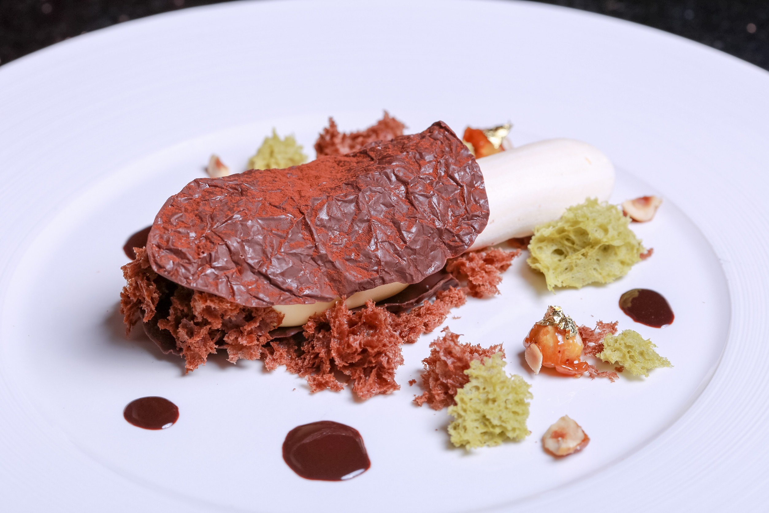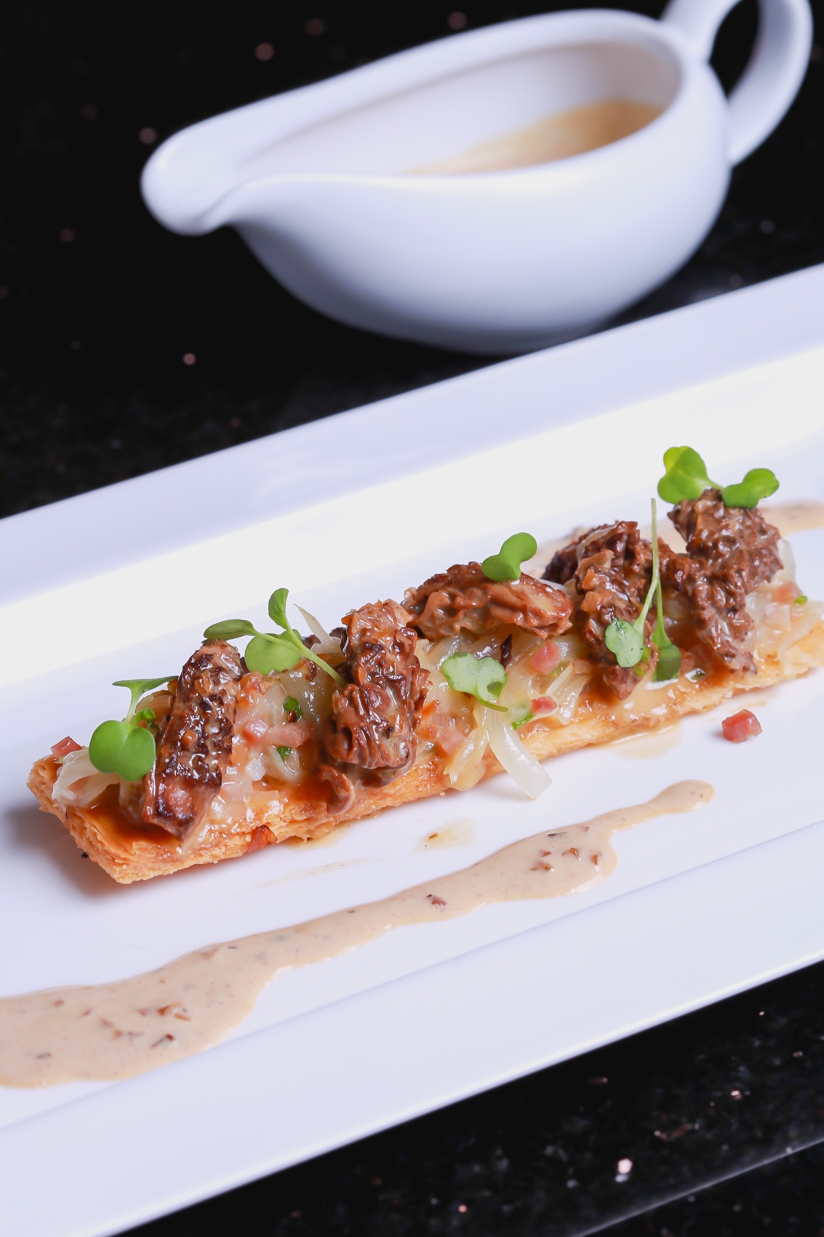 *มอเรลกรอบอุ่น ”ทาร์ตตาแตง” (หัวหอมขาวและฟองดูแฮมรมควัน, วิปครีม)                     795 บาท++