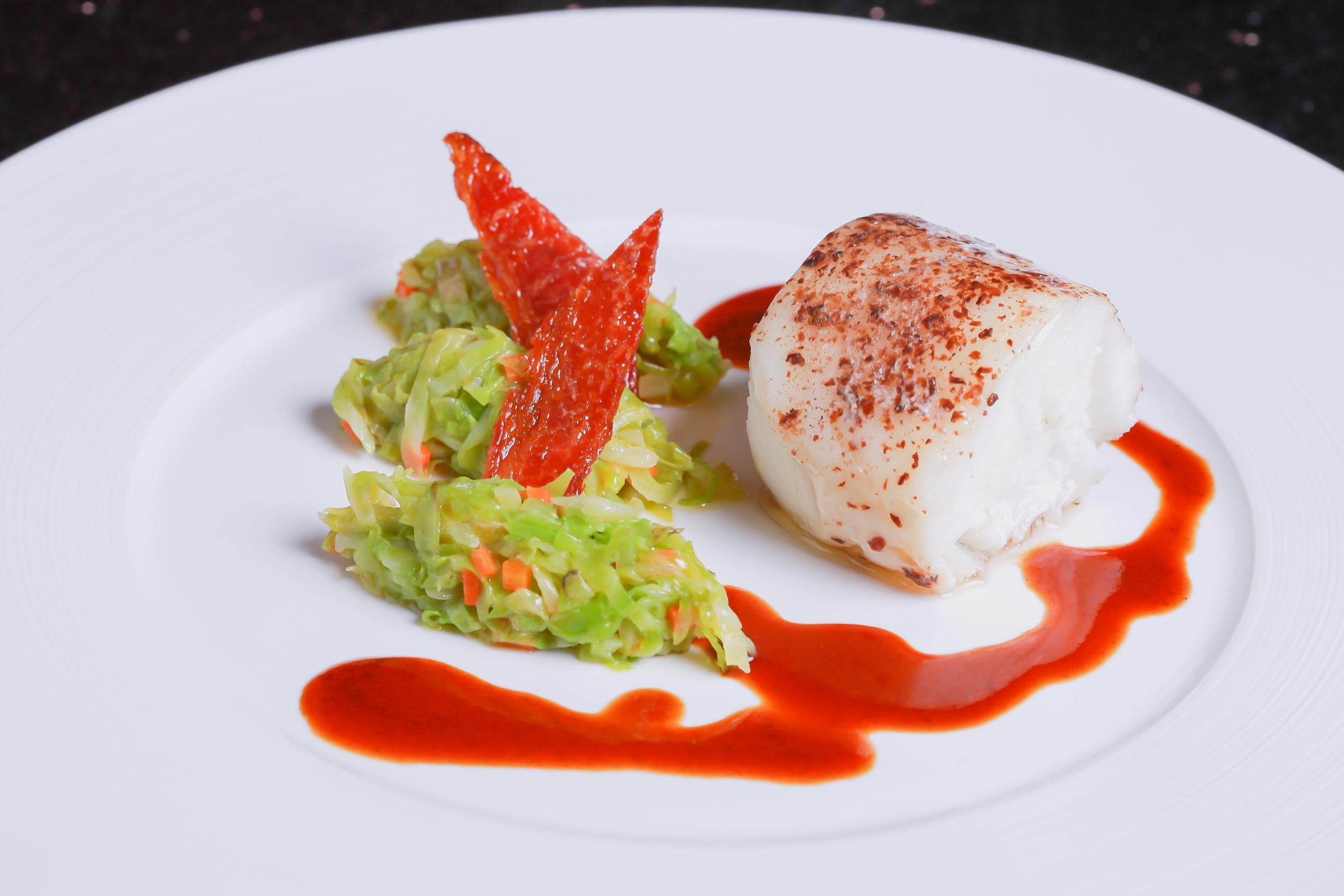 *ปลาหิมะนึ่งชุบขนมปังกับเห็ดมอเรล (กะหล่ำปลีสตูว์เนยและซอสเกรวี่)                  1,750 บาท++