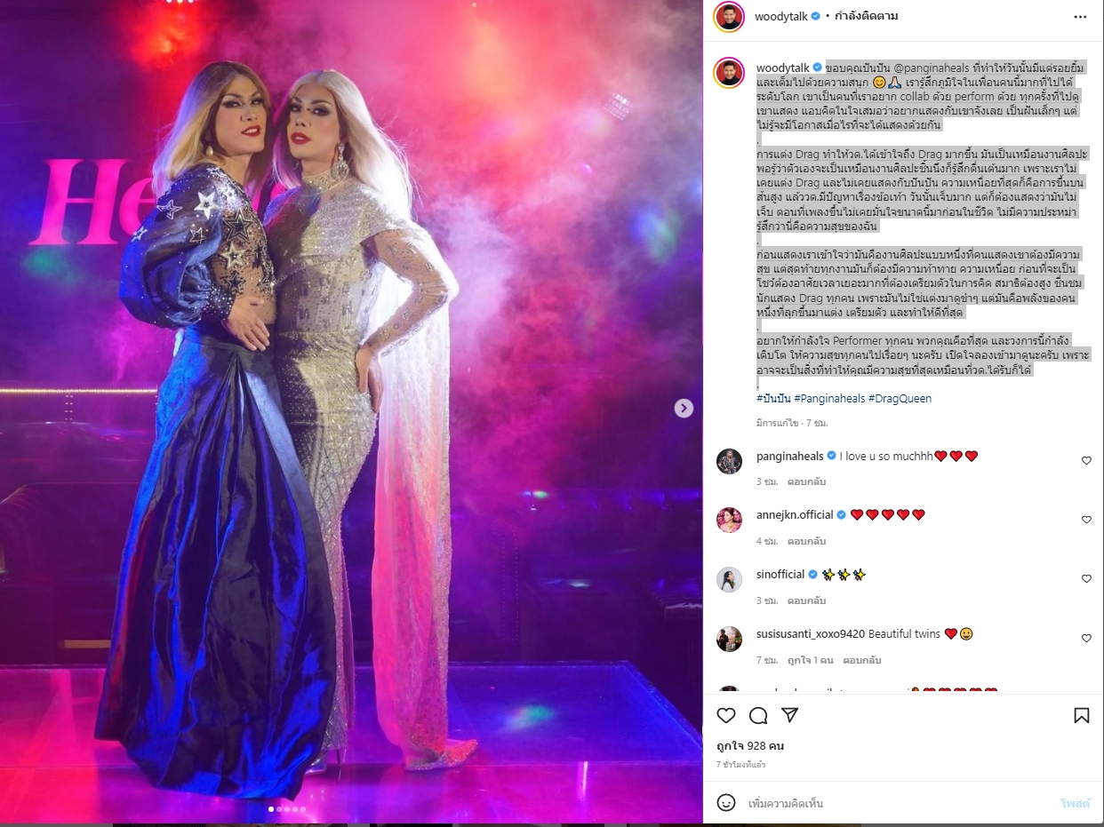 การแต่ง Drag ทำให้วด.ได้เข้าใจถึง Drag มากขึ้น มันเป็นเหมือนงานศิลปะ พอรู้ว่าตัวเองจะเป็นเหมือนงานศิลปะชิ้นนึงก็รู้สึกตื่นเต้นมาก เพราะเราไม่เคยแต่ง Drag และไม่เคยแสดงกับปันปัน ความเหนื่อยที่สุดก็คือการขึ้นบนส้นสูง แล้ววด.มีปัญหาเรื่องข้อเท้า วันนั้นเจ็บมาก แต่ก็ต้องแสดงว่ามันไม่เจ็บ ตอนที่เพลงขึ้นไม่เคยมั่นใจขนาดนี้มาก่อนในชีวิต ไม่มีความประหม่า รู้สึกว่านี่คือความสุขของฉัน