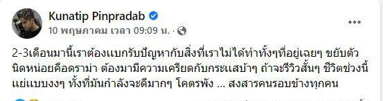 โดยหนุ่ม นิก ได้โพสต์ข้อความว่า “2-3เดือนมานี้เราต้องเเบกรับปัญหากับสิ่งที่เราไม่ได้ทำ ทั้งๆที่อยู่เฉยๆ ขยับตัวนิดหน่อยคือดราม่า ต้องมามีความเครียดกับกระเเสบ้าๆ ถ้าจะรีวิวสั้นๆ ชีวิตช่วงนี้ เเย่เเบบงงๆ ทั้งที่มันกำลังจะดีมากๆ โคตรพัง … สงสารคนรอบข้างทุกคน”