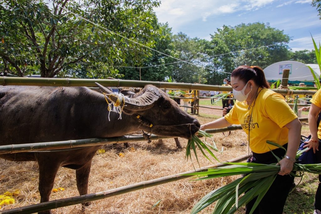 “ทิพยสืบสาน รักษา ต่อยอด นวัตกรรมศาสตร์พระราชา ครั้งที่ 18 ” จัดโดย บริษัท ทิพยประกันภัย จำกัด (มหาชน) และองค์กรภาคี ศูนย์คุณธรรม (องค์การมหาชน) มูลนิธิประเทศไทยใสสะอาด สำนักโครงการและจัดการความรู้ (OKMD) กองทุนพัฒนาสื่อปลอดภัยและสร้างสรรค์ การท่องเที่ยวแห่งประเทศไทย สมาคมนักเรียนเก่า AFS ประเทศไทย และมูลนิธิธรรมดี โดยให้ความสำคัญกับการเรียนรู้ด้านการทำเกษตรกรรม เป็นการนำคณะครูอาจารย์ที่ได้รับการคัดเลือกจากทั่วประเทศลงพื้นที่ร่วมประสบการณ์ทำการเกษตรปลูกข้าวทำนา พร้อมร่วมอนุรักษ์กระบือไทย ส่งเสริมประเพณีการสู่ขวัญควายที่มีมาแต่โบราณ ร่วมไถ่ชีวิตกระบือรวม 24 ชีวิต หนึ่งในนั้นเป็นกระบือเผือก เพศผู้ลักษณะดี จึงได้ยื่นเรื่องเสนอทูลเกล้าฯถวายเป็นกระบือทรงเลี้ยง ณ โครงการโรงเรียนกาสรกสิวิทย์ อันเนื่องมาจากพระราชดำริ จ.สระแก้ว หนึ่งในโครงการที่ได้ถูกคัดเลือกอยู่ในหนังสือเดินทางตามรอยพระราชา โดยศูนย์คุณธรรมร่วมกับองค์กรภาคี จัดทำสรุป 9 เส้นทาง 81 แหล่งเรียนรู้ศาสตร์พระราชา