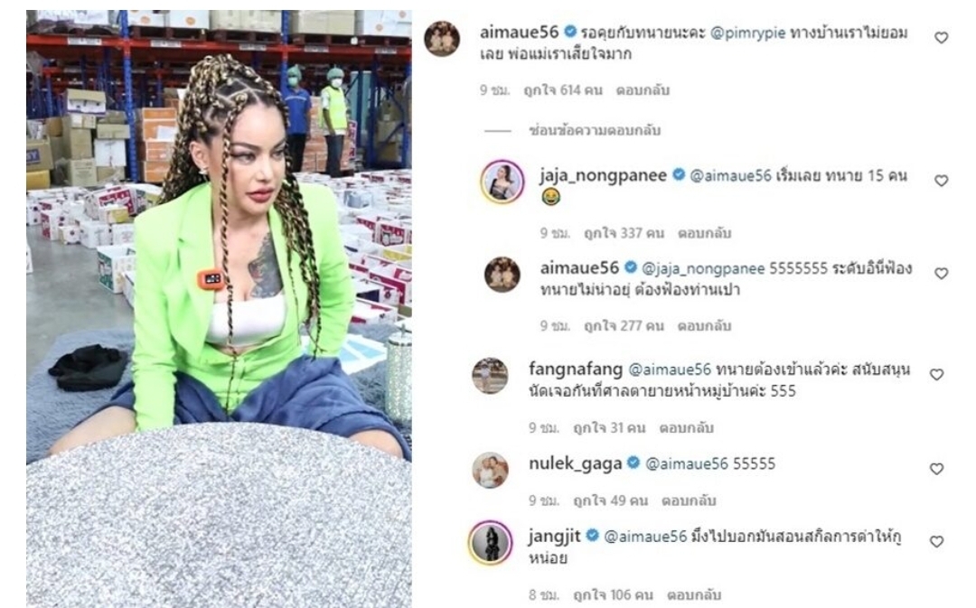 งานนี้ลั่นหนัก เอม ตามใจตุ๊ด ก็ถึงกับเข้าไปคอมเมนต์แบบพีกๆด้วยว่า รอคุยกับทนายนะคะ @pimrypie ทางบ้านเราไม่ยอมเลย พ่อแม่เราเสียใจมาก จ๊ะ ก็บอกว่า เริ่มเลย ทนาย 15 คน ทำเอาเอมต้องมาตอบติดตลกอีกว่า ระดับอินี่ฟ้องทนายไม่น่าอยุ่ ต้องฟ้องท่านเปา