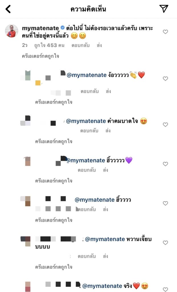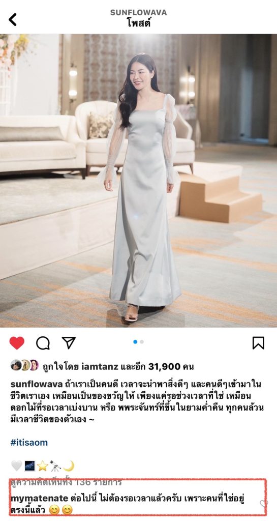 ส่วน หนุ่มเนท พอได้เห็นข้อความนี้ของ เอวา ก็เข้าหยอดคำหวานตอบทันทีว่า “ต่อไปนี้ ไม่ต้องรอเวลาแล้วครับ เพราะคนที่ใช่อยู่ตรงนี้แล้ว 😊😊 “