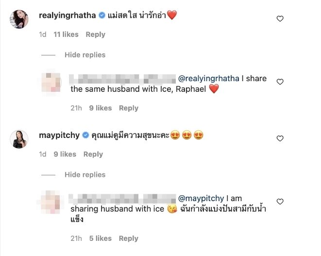 แต่งานนี้กลับทำเอา ไอซ์ อภิษฎา งานเข้า หลังเจอสาวปริศนาคอมเมนต์อ้างมีสามีคนเดียวกัน หลังไม่เคยเปิดตัว โดยสาวปริศนารายดังกล่าวได้เข้ามาคอมเมนต์กลางอินสตาแกรม ไอซ์ อภิษฎา เอาไว้ว่าI share the same husband with Ice, Raphael ซึ่งแปลเป็นภาษาไทยได้ว่า ฉันกำลังแบ่งปันสามีกับไอซ์ และสาวปริศนาก็ไล่ตอบคอมเมนต์ของเพื่อนๆดาราที่เข้ามาคอมเมนต์