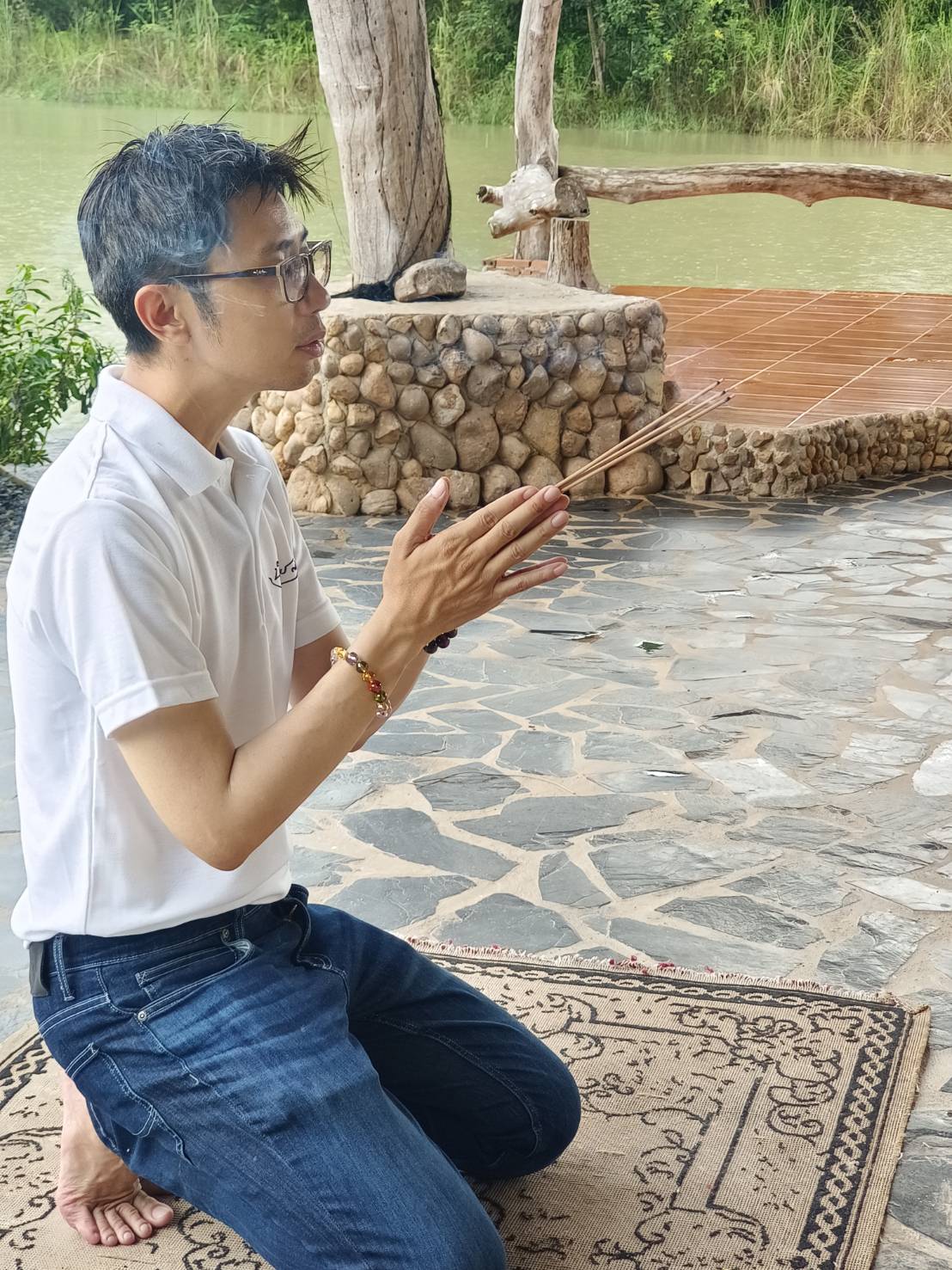 “ผู้ที่มาร่วมงานก็ได้อานิสงส์ได้ชื่นใจ ได้แสดงกตัญญูต่อสิ่งศักดิ์สิทธิ์ที่ท่านเคารพ ได้ไวยาวัจมัยแปลเป็นไทยคือ การได้ขวนขวายรับใช้ออกแรงทำประโยชน์ร่วมกัน ได้ปัตตานุโมทนามัยก็คือมาอนุโมทนา มายินดีมาชื่นชมร่วมกันทำความดีถวายสิ่งศักดิ์สิทธิ์ ในสถานที่แห่งนี้ก็มีสิ่งศักดิ์สิทธิ์เยอะทั้ง พระพุทธ พระธรรม พระสงฆ์ เทพเทวดา ครูบาอาจารย์ พระโพธิสัตว์ ท่านพญานาคทั้งหลาย ใครที่มีส่วนเกี่ยวข้องรู้สึกศรัทธาก็มาร่วมกัน ผมกับช่างเอ๋เป็นประธานร่วมกัน เปิดกว้างให้ทุกคนในการทำความดีร่วมกัน มาในครั้งนี้ก็ได้สักการะสิ่งศักดิ์สิทธิ์อื่นๆ ด้วย อาจจะเปลี่ยนแปลงชีวิตให้กลายเป็นดี โชคดีมีโชคใหญ่กลับไปก็ได้”