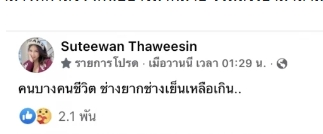 แต่ล่าสุดจู่ๆทางด้าน ใบเตย สุธีวัน โพสต์ข้อความปริศนากลางดึกทำหลายคนอดเป็นห่วงไม่ได้ โดยทางด้าน ใบเตย สุธีวัน ได้โพสต์ข้อความผ่านทางเฟซบุ๊กส่วนตัวเอาไว้ว่า คนบางคนชีวิต ช่างยากช่างเย็นเหลือเกิน..