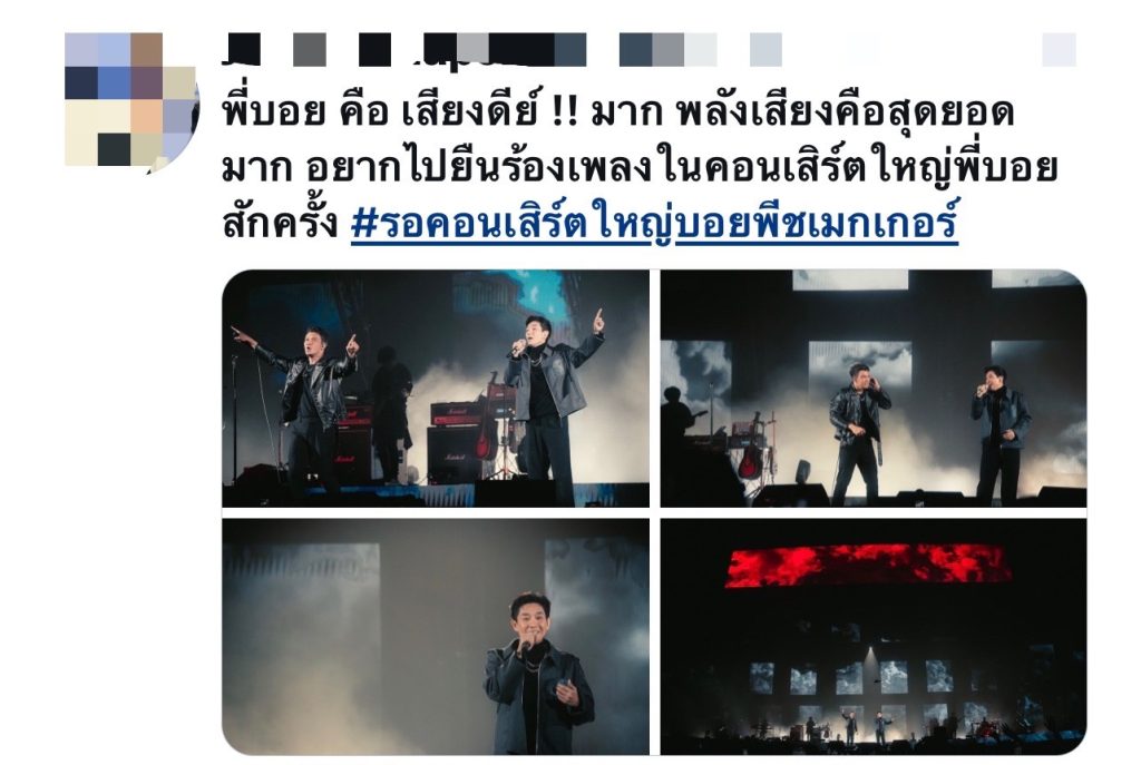 หวีดสนั่นทวิตฯทีเดียว หลังจากเจ้าพ่อเพลงเศร้า บอย พีชเมกเกอร์ ขึ้นโชว์พลังเสียงเรียกเสียงกรี๊ดสนั่นฮอลล์ในฐานะแขกรับเชิญในคอนเสิร์ตใหญ่ของ หนุ่ม กะลา (MY NAME IS NUM KALA ‘FIRST IMPACT CONCERT’) เมื่อวันที่ผ่าน