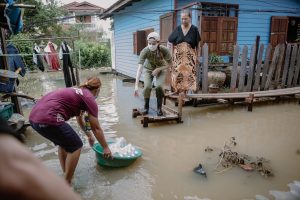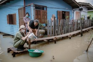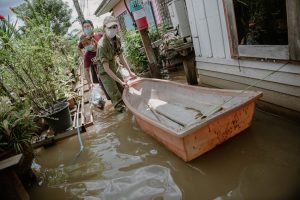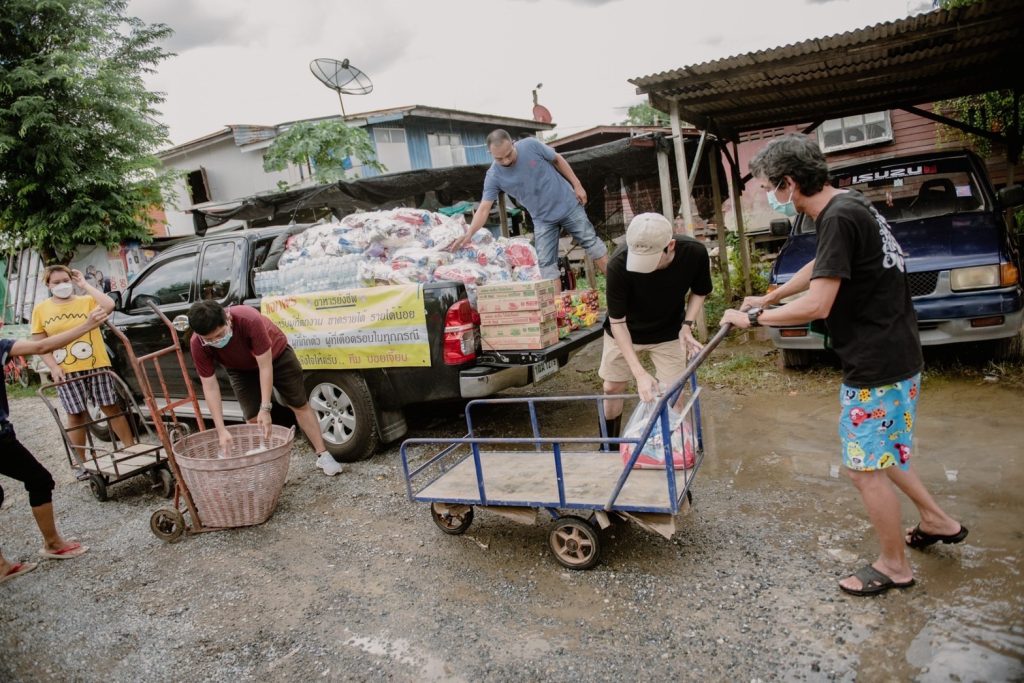 จาก “รถกับข้าว” เราต้องเปลี่ยนเป็น “เรือกับข้าว”ชั่วคราว ขอส่งกำลังใจให้พี่น้องชุมชนที่ประสบภัยน้ำท่วมในครั้งนี้ครับ ชุมชนที่เราไปวันนี้ น้ำเริ่มลดลงบ้าง แต่ถ้าฝนตกอีกก็จะกลับมาท่วมถึงชั้น2ของบ้านอีกครั้ง สถานการณ์ของผู้คนในชุมชน จำเป็นต้องอยู่แบบนี้วนเวียนมาหลายสัปดาห์