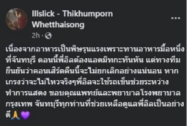 ล่าสุดในเพจเฟซบุ๊กของ อิลสลิก Illslick – Thikhumporn Whetthaisong ได้ออกมาแจ้งข่าวหลังต้องเข้ารับการรักษาอย่างกระทัน โดยระบุว่า
