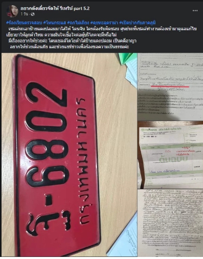 “เซลล์รถเอาป้ายแดงปลอมมาใส่ให้ โดนจับ ใครต้องรับผิดชอบ ศูนย์รถที่เซลล์ทำงานต้องเข้ามาดูแล แก้ไขเยียวยาให้ลูกค้าไหม ความมั่นใจเชื่อใจต่อผู้บริโภคจะมีหรือไม่ มีเรื่องอยากให้ช่วยค่ะ โดนเซลล์โตโยต้าใส่ป้ายแดงปลอม เป็นคดีอาญา อยากให้ช่วยเตือนภัย และช่วยแชร์ข่าวเพื่อร้องขอความเป็นธรรมค่ะ”
