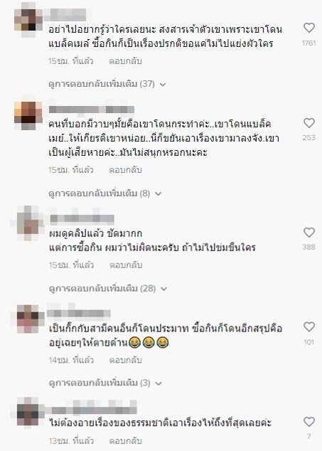 ทำเอาชาวเน็ต เข้ามาแสดงความคิดเห็นกันจำนวนมาก บ้างก็แสดงความเห็นว่า อย่าไปอยากดูคลิปอยากรู้เลยว่าเป็นใครเขาไม่ได้ไปแย่งของใครหรือเป็นชู้กับใครซื้อกินไม่ผิด พร้อมประณามคนที่ถ่ายคลิปไปแบล็กเมล์ต่างหากที่เป็นคนผิด