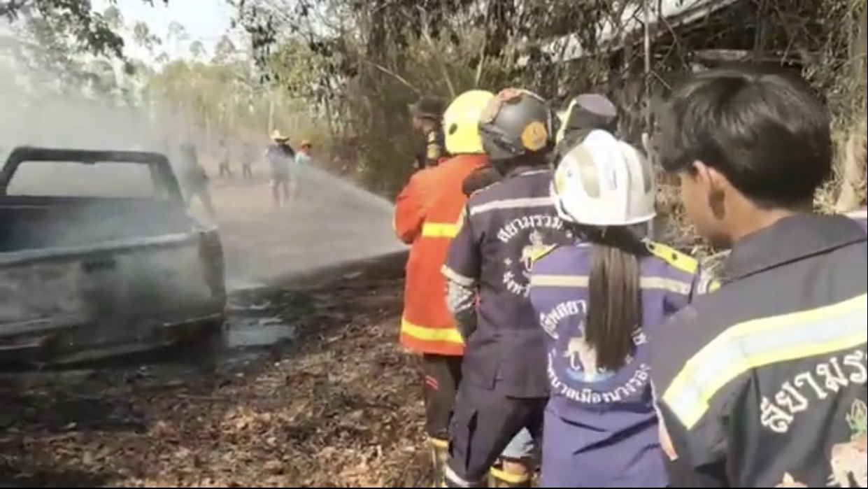 วันที่ 6 เม.ย.66 ร.ต.อ.วิวัฒน์ นามอาษา รองสารวัตร (สอบสวน) สภ.นางรอง จ.บุรีรัมย์ รับแจ้งมีไฟไหม้รถของชาวบ้าน ที่บ้านทุ่ง หมู่ 5 ต.นางรอง อ.นางรอง จ.บุรีรัมย์ จึงประสานหน่วยกู้ภัยสยามร่วมใจปู่อินทร์ และหน่วยกู้ภัยทางหลวงนางรอง เข้าร่วมตรวจสอบ