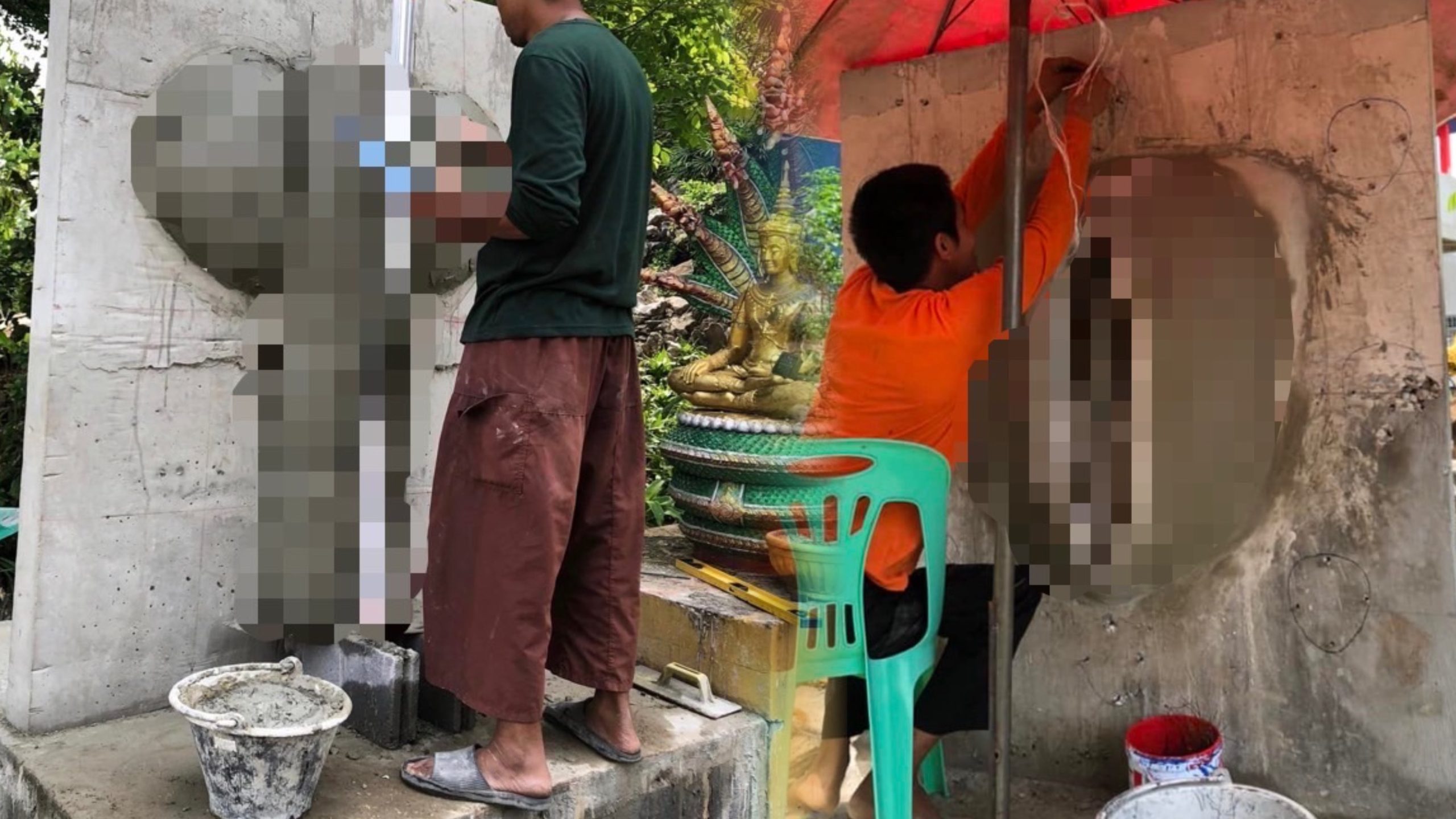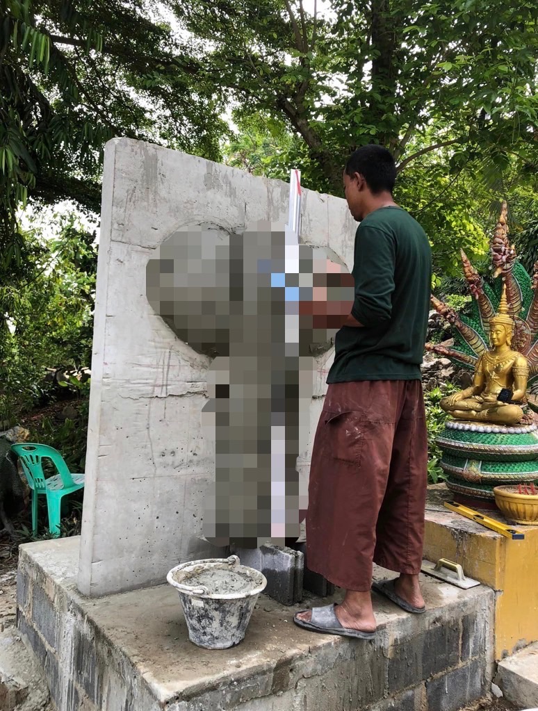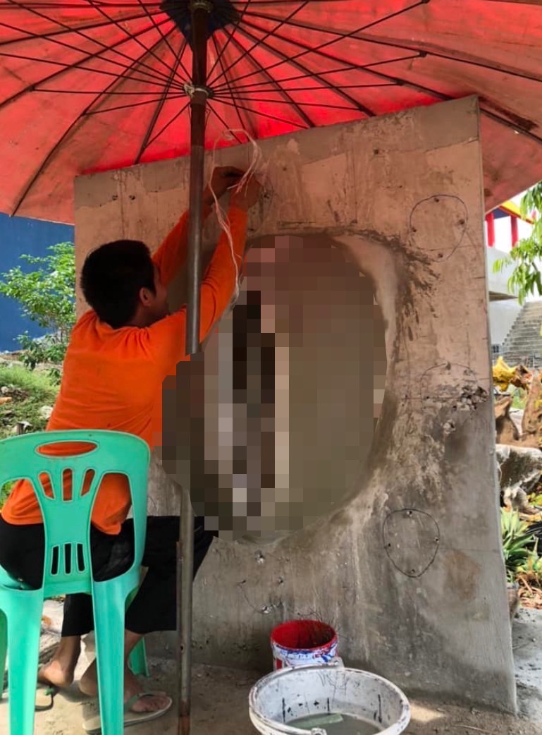 ในสำนักพราหมณ์ดังกล่าวยังมีรูปปั้นอวัยวะเพศชายอยู่ด้วย โดยให้ผู้ศรัทธาเข้ามาปิดทองเช่นกัน นอกจากนี้ยังมีป้ายไวนิลข้อความว่า “xี กับ คxx มวยคู่เอกของโลก”
