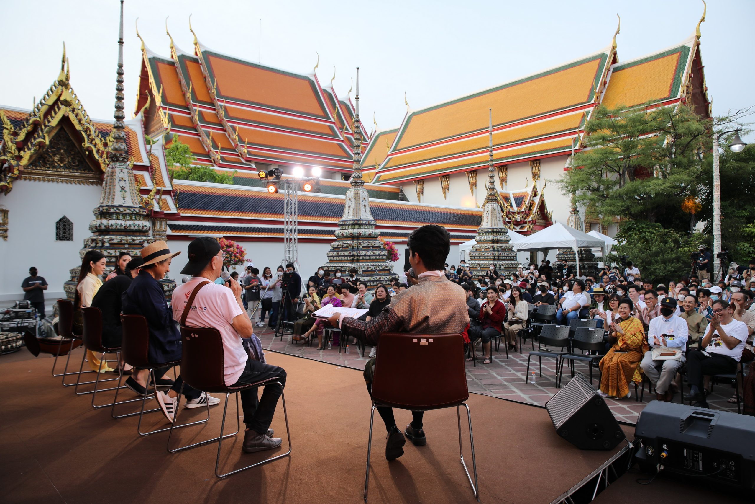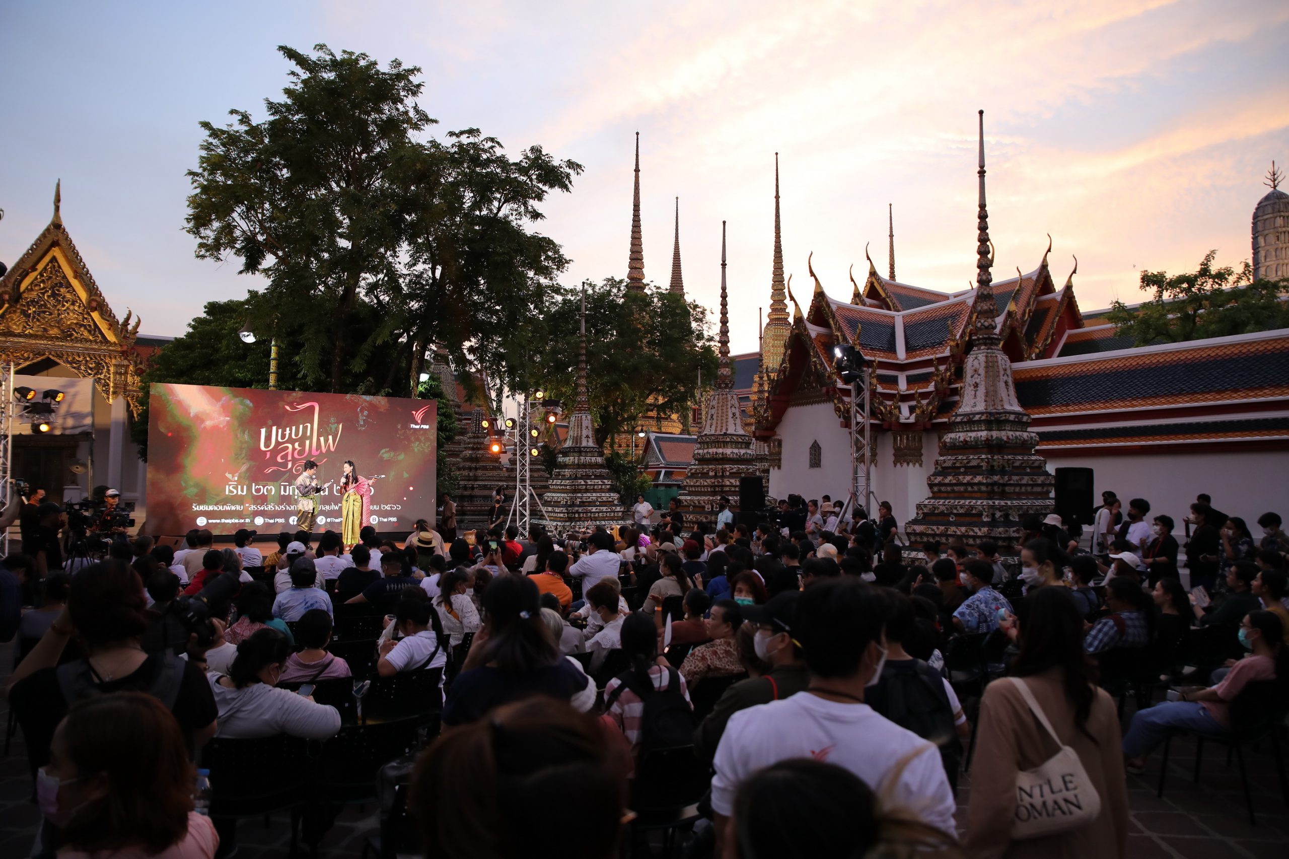 องค์การกระจายเสียงและแพร่ภาพสาธารณะแห่งประเทศไทย (ส.ส.ท.) หรือ ไทยพีบีเอส นำโดย รศ. ดร.วิลาสินี พิพิธกุล ผู้อำนวยการ ส.ส.ท. ร่วมกับ รติวัลคุ์ ธนาธรรมโรจน์ ประธานเจ้าหน้าที่บริหาร และ ฐิติ สุทธิกุลพานิช กรรมการบริหาร บริษัท จูเวไนล์ จำกัด พร้อมยกทีมผู้กำกับ ผู้ประพันธ์ และนักแสดงจากละครเรื่อง “บุษบาลุยไฟ” นำโดย พ่ออี๊ด-สุประวัติ ปัทมสูต ศิลปินแห่งชาติ สาขาศิลปะการแสดง ผู้กำกับ ปราณประมูล ผู้ประพันธ์บทละคร พร้อมด้วยคู่พระนาง โทนี่ รากแก่น และ เฌอปราง อารีย์กุล (เฌอปราง BNK48) และทัพนักแสดงอีกคับคั่ง ได้แก่ ลูกหว้า-พิจิกา จิตตะปุตตะ, เอ็กซ์-พรเลิศ พิพัฒน์รุ่งเรือง, บัว-ภัทรสุดา อนุมานราชธน, อ้น-เลอวิทย์ สังข์สิทธิ์, มากิ-มาชิดา สุทธิกุลพานิช, แพรว-หัสสยา อิสริยะเสรีกุล, ภัทร-นัตธนนท์ ปิ่นโรจน์กีรติ, น็อต-ธีร์ อริยฤทธิ์วิกุล, ทอม จักรกฤต โยมพยอม, ริด้า-ฟาริดา วัลเล่อร์, ญาณี-ตราโมท, รัก-ศรัทธา ศรัทธาทิพย์, หยา-จรรยา ธนาสว่างกุล, จ๋า-โมฬีวรรณ พันธรักษ์, พรเพ็ญ ฟ้าอำนวย และ กัญจนปกรณ์ แสดงหาญ ได้ฤกษ์จัดงาน “ย่ำค่ำ ลำนำศิลป์ บุษบาลุยไฟ” ณ วัดพระเชตุพนวิมลมังคลาราม (วัดโพธิ)