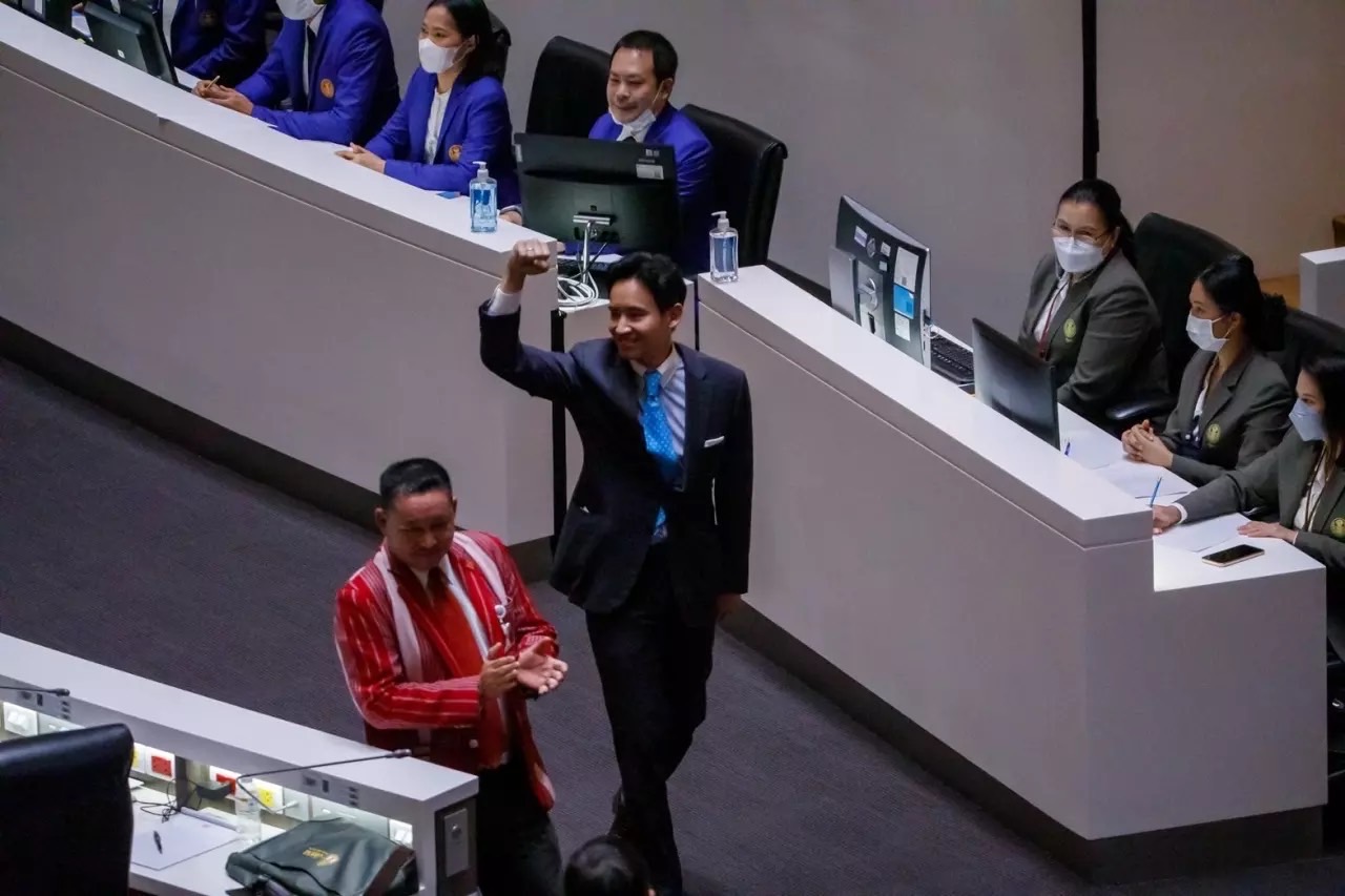 จากนั้น ส.ส.พรรคก้าวไกล และพรรคร่วมจัดตั้งรัฐบาล ลุกขึ้นปรบมือ บางคนเข้าสวมกอด นายพิธา ทางด้านประธานรัฐสภา กล่าวขอบคุณ นายพิธา ที่ให้ความเคารพตามกติกาของสภา ไม่ขอปฏิบัติหน้าที่ในสภา จนกว่าคำสั่งวินิจฉัยจะเปลี่ยนแปลง อย่างไรก็ตาม ก่อนออกจากห้อง นายพิธา ยังได้ชูกำปั้นด้วยมือขวา จนได้เสียงปรบมืออีกครั้ง