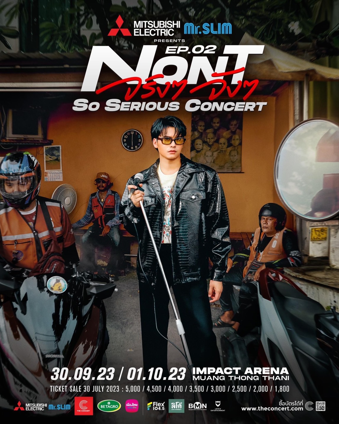 สิ้นสุดการรอคอย หลังจากประกาศลั่นโซเชียลกับภาพโปรโมทสุดปังเมื่อไม่นานมานี้ กลับมาสร้างปรากฏการณ์ความพิเศษเหนือคำบรรยาย ในคอนเสิร์ตสุดยิ่งใหญ่ “MITSUBISHI ELECTRIC Mr.SLIM Presents NONT EP.02 SO SERIOUS จริงๆจังๆ Concert” ที่คราวนี้กับคอนเสิร์ตใหญ่เต็มรูปแบบที่จริงจัง จัดใหญ่ จัดเต็ม และ SO SERIOUS กว่าครั้งไหนๆ แน่นอนว่าโชว์ครั้งนี้ แฟนเพลงทุกคนได้ตื่นตา ตื่นใจไปกับโชว์ในรูปแบบจริงๆจังๆที่ไร้ขีดจำกัด พร้อมตื่นตาตื่นใจไปกับโปรดักชั่นเต็มรูปแบบ ทั้งแสง สี เสียง ตระการตา ที่ไม่เคยเห็นที่ไหนมาก่อน บอกได้เลยว่ามีเซอร์ไพรส์สุดเอ็กซ์คลูซีฟอีกมากมาย ในคอนเสิร์ตครั้งนี้โดยเฉพาะ ถ้าไม่อยากพลาดเตรียมตัวให้พร้อมแล้วไปร่วมสร้างความสุขสนุกสนานกันแบบจริงจังได้เลย
