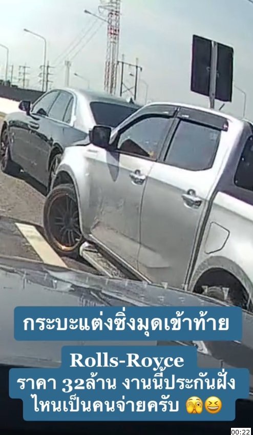 จากกรณีที่เมื่อวันที่ 14 ส.ค.2566 ผู้ใช้งาน TikTok รายหนึ่ง ได้โพสต์ภาพเหตุการณ์อุบัติเหตุบนมอเตอร์เวย์ฝั่งขาเข้ากรุงเทพฯ มีกระบะคันหนึ่งชนท้ายของรถ Rolls Royce โดยผู้ใช้งานรายดังกล่าวระบุว่า “กระบะเเต่งซิ่งชนรถโรลส์ รอยซ์ราคา 32 ล้าน งานนี้ประกันฝั่งไหนเป็นคนจ่ายครับ”