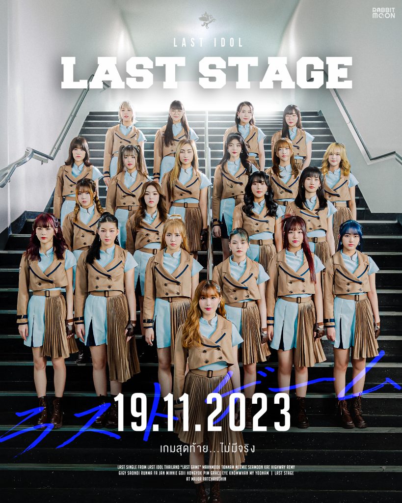 ค่าย Rabbit Moon ประกาศอย่างเป็นทางการไปแล้วกับการจัด “LAST STAGE” คอนเสิร์ตสุดท้ายเพื่อให้แฟนคลับได้มาร่วมเก็บโมเมนต์สุดท้าย พร้อมชวนทุกคนมาร่วมสร้างความทรงจำที่แสนประทับใจกับ 21 สาวไอดอล LAST IDOL FAMILY กับความผูกพันกันตั้งแต่อยู่ในรายการ “LAST IDOL THAILAND” ทั้งกับ Member และ แฟนคลับที่คอยสนับสนุน โดยก่อนหน้านี้ ทางค่ายฯ ก็ได้ทำการปล่อยซิงเกิลลำดับที่ 3 กับ 2 เพลงความหมายดี ส่งท้าย LAST IDOL THAILAND ซึ่ง ม่านมุก – ชดาธาร ด่านกุล เป็น Center เพลงหลัก “LAST GAME เกมสุดท้าย… ไม่มีจริง” และ เพลงรอง “La La Last Idol” ได้ ต้นน้ำ – บัณฑิฏา สันตยารมณ์ มาเป็น Center เพื่อบอกเล่าเรื่องราวที่ผ่านมาและขอบคุณทุกกำลังใจที่มีให้พวกเธอมาตลอดระยะเวลา 2 ปี ซึ่งคอนเสิร์ตนี้ 21 สาวไอดอล ได้เตรียมเซอร์ไพรส์มากมายมาให้แฟนๆ ตลอดทั้งงาน โดย “LAST STAGE” คอนเสิร์ตสุดท้ายจะจัดขึ้นในวันอาทิตย์ที่ 19 พฤศจิกายน 2566 ณ เมเจอร์ ซีนีเพล็กซ์ รัชโยธิน
