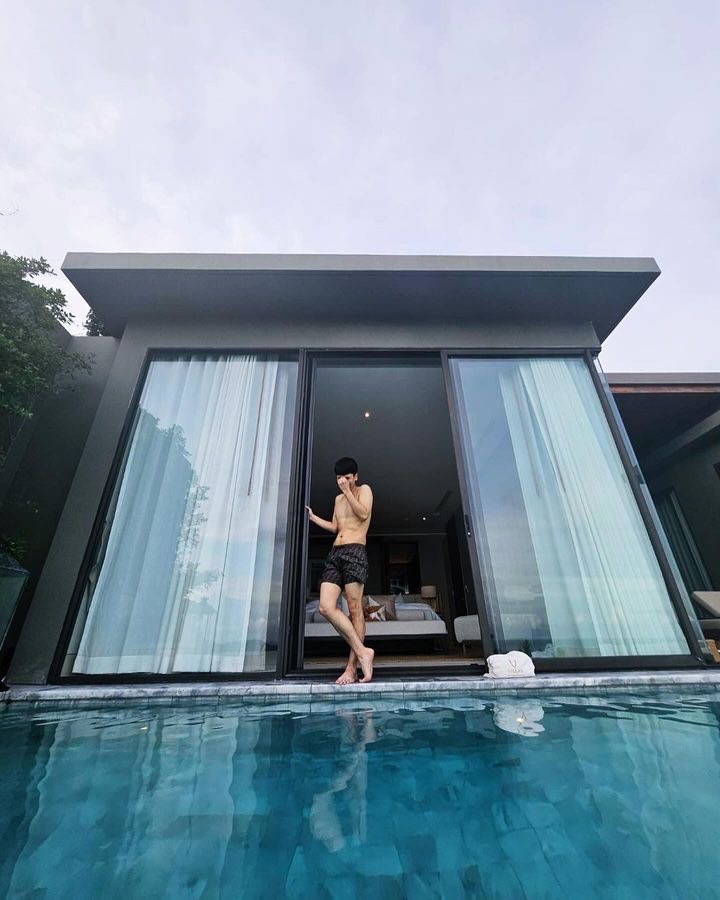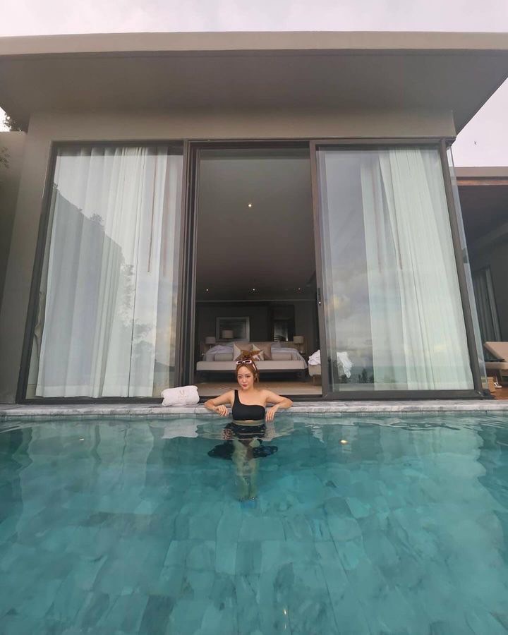 “ทำไมคนอื่นเค้าถ่ายที่สระว่ายน้ำแล้วสวยจัง นี่พยายามคัดแล้วคัดอีก รูปชุดนี้คือสวยที่สุดในทริปนี้แล้วละ พยายามเต็มที่แล้วคราวหน้าเอาใหม่นะ @vvillasphuket #แก้มพีท”