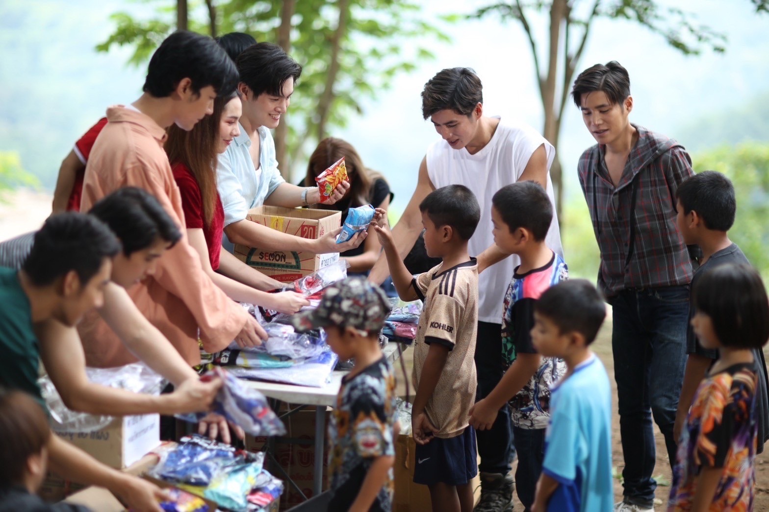 โดยน้องๆในชุมชนระแวกวัดศรีกะอาง จังหวัดนครนายก ได้มีโอกาสร่วมแสดงซีรีส์ปลื้มคนโปรดกับพี่ๆนักแสดง ยังได้รับเสื้อผ้า ชุด และอุปกรณ์กีฬา จากผู้สนับสนุนใจดีจาก“คุณมนตรี โอนอ่อน” กรรมการผู้จัดการ บริษัท ยูเรก้า (ประเทศไทย) จำกัด เพื่อใช้ในกิจกรรมสันทนาการในชุมชนอีกด้วย