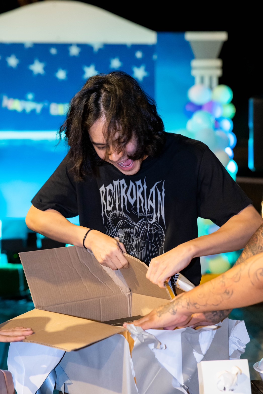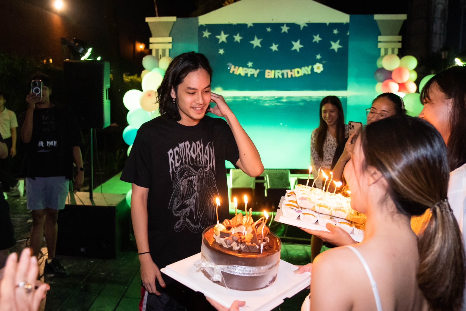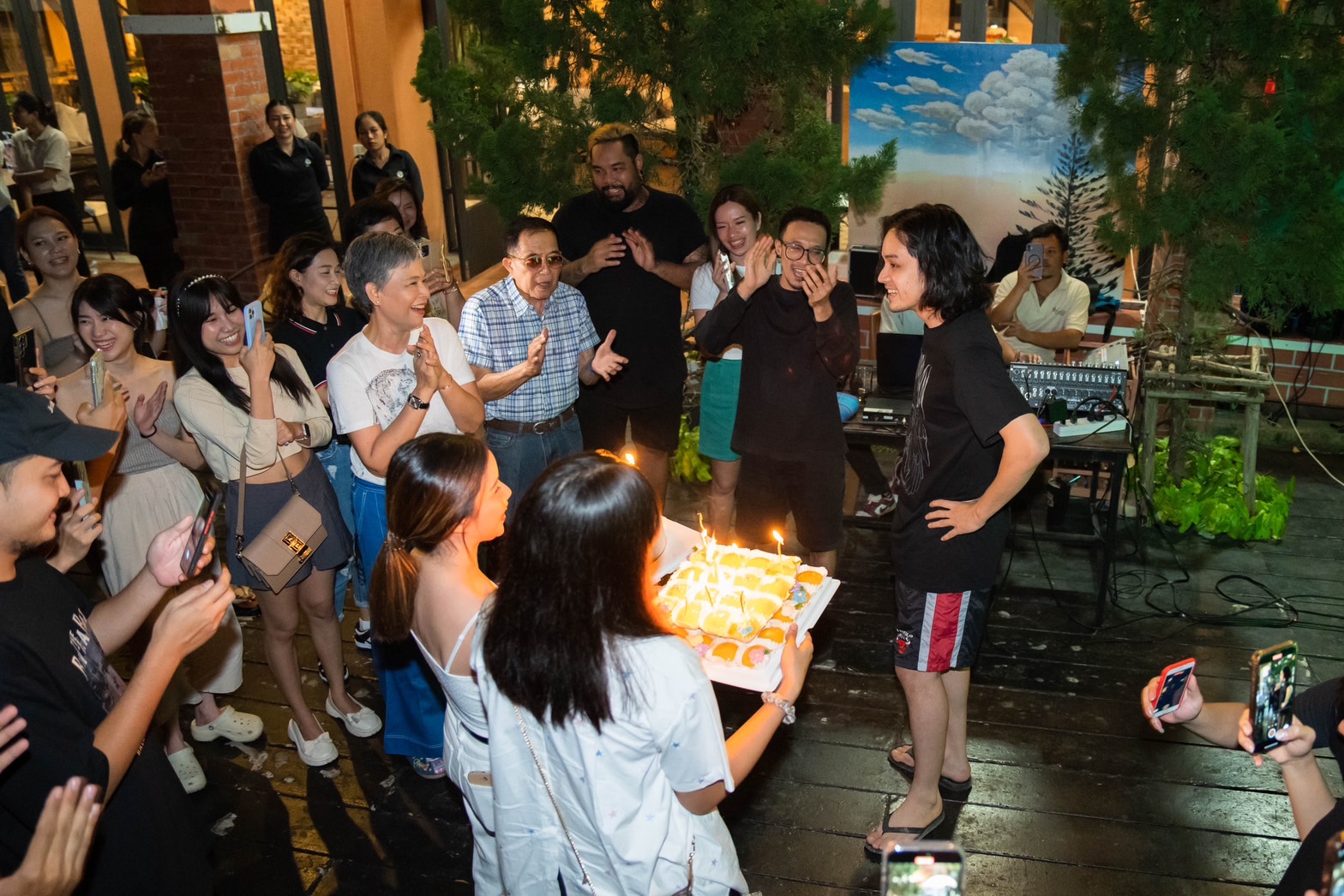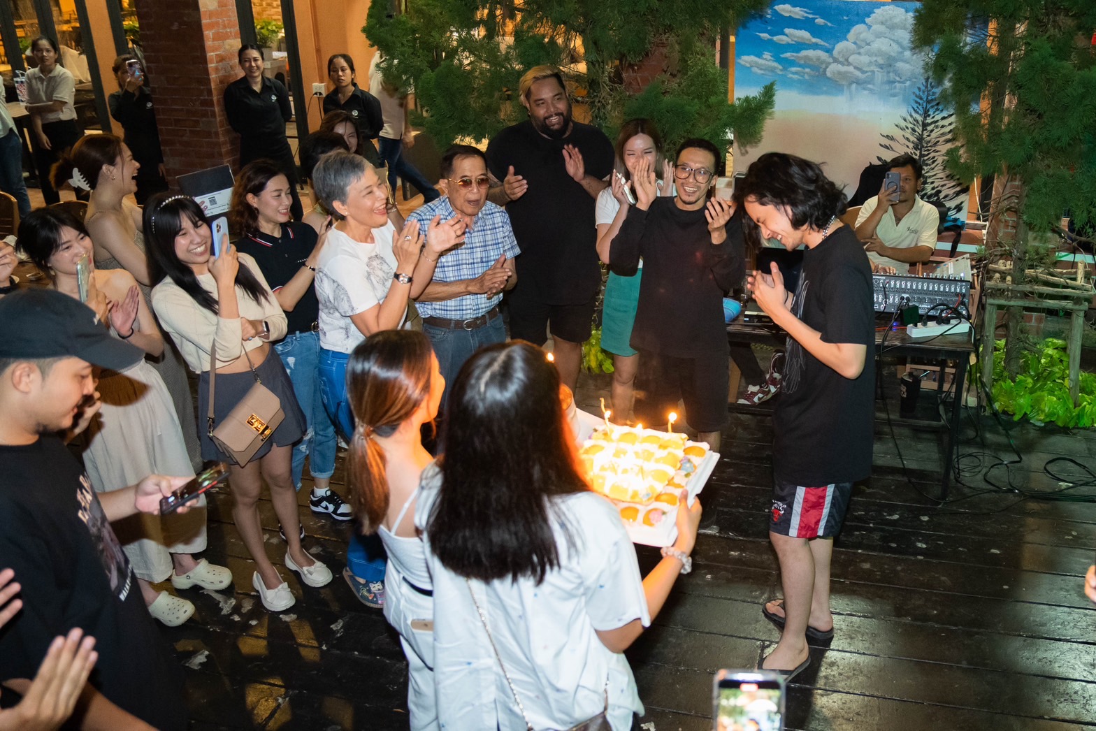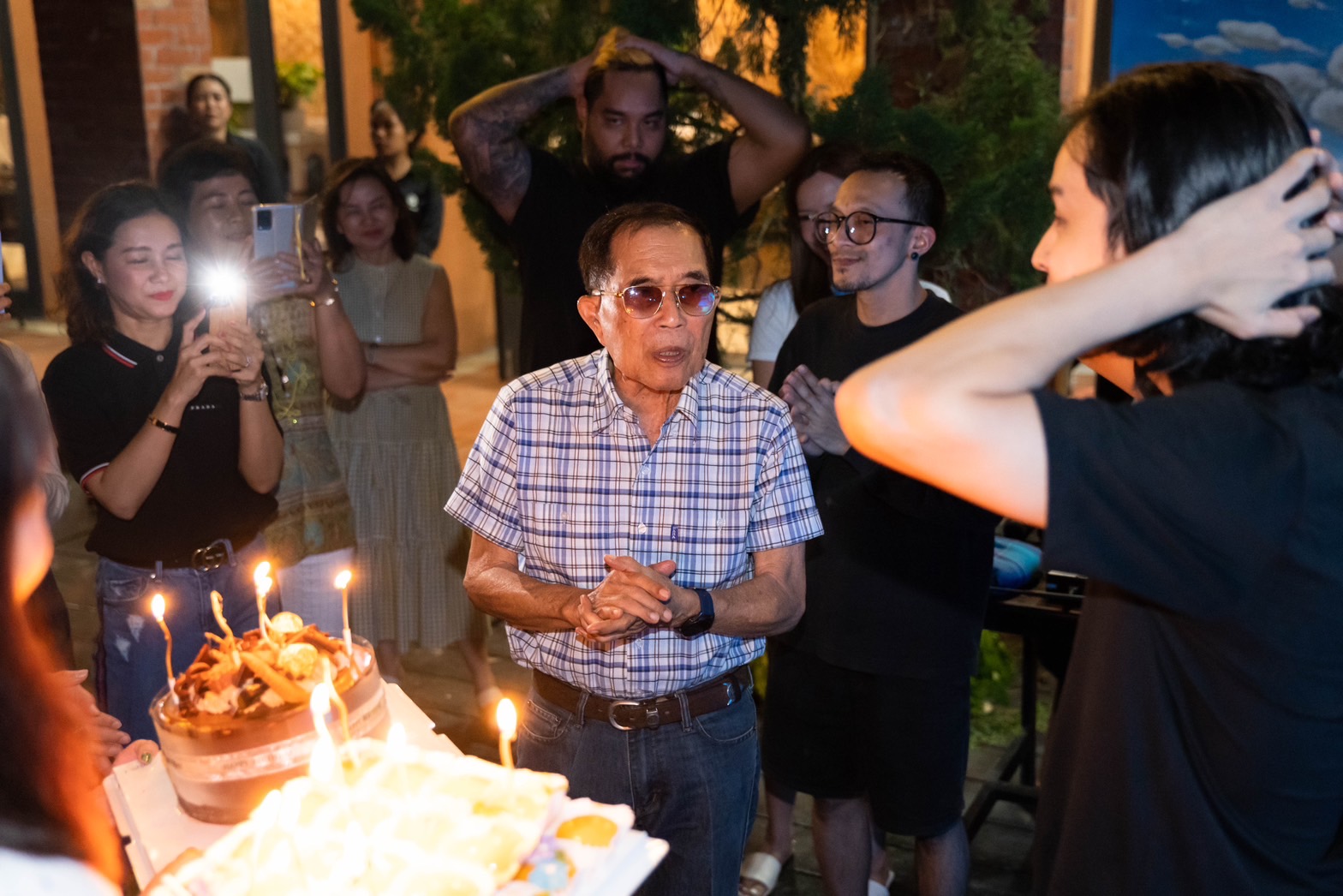 พอได้ยินเสียงร้องเพลงแฮปปี้เบิร์ดเดย์ทูยูจากทุกคนร้องอย่างพร้อมเพียงกันทำเอาเจ้าตัวแฮปปี้สุดๆกับเซอร์ไพรส์ที่ไม่คาดคิดนี้ พร้อมกับเอามือกุมหน้าอกและเอ่ยปากว่า “จะร้องไห้ขนลุกเลยเนี่ย” แถมงานนี้ยังมีโมเม้นต์น่ารักๆของ คุณตา หนุ่มเก้า ที่ได้อวยพรวันเกิดหลานชายให้ “ มีความสุข สมปรารถนาในทุกสิ่ง “ เรียกว่าเป็นงานเลี้ยงวันเกิดที่รวมทุกอารมณ์แต่มวลรวมคือความสุขที่ล้นปรี่