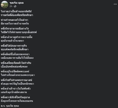 ล่าสุด หม่อมเจ้าจุลเจิม ยุคล ได้ออกมาโพสต์ข้อความ กลอน “ราชสวัสดิ์” ระบุ