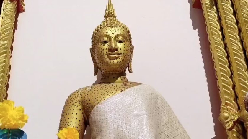 พอเข้าไปดูใกล้ ๆ พบว่า ที่องค์พระพุทธรูปปางรำพึง ซึ่งเป็นพระประจำวันเกิดวันศุกร์มีความสูงประมาณ 1 เมตร 50 เซ็นติเมตร มีเม็ดตุ่มขึ้นเต็มองค์ เมื่อนำมือไปลูบจับดู เป็นตุ่มแข็ง ๆสร้างความแปลกประหลาดมาก จึงได้นำดอกไม้ธูปเทียนมากราบไหว้และอธิฐานขอเลขเด็ดโดยการจุดธูปขอเลขเนื่องจากใกล้วันหวยออกโค้งสุดท้าย ได้เลขเด็ด 490-495