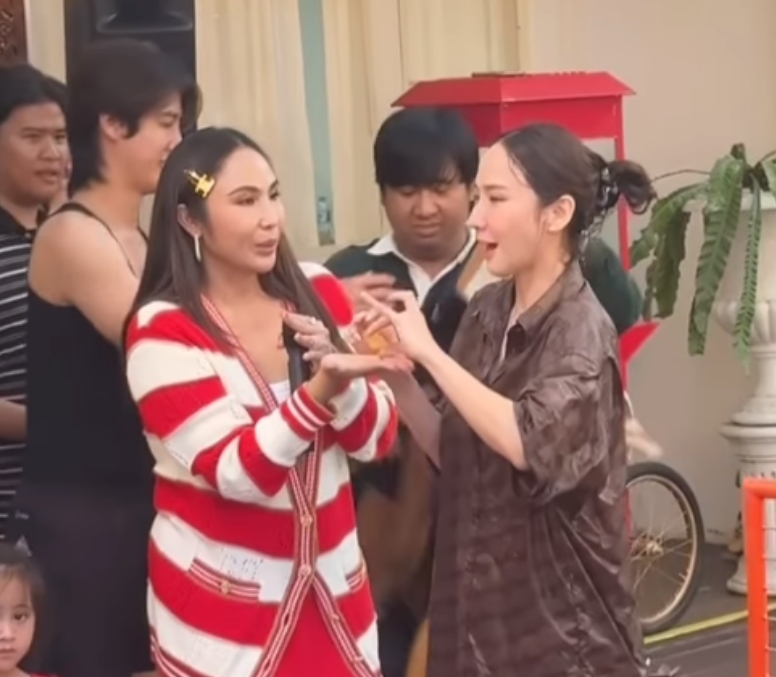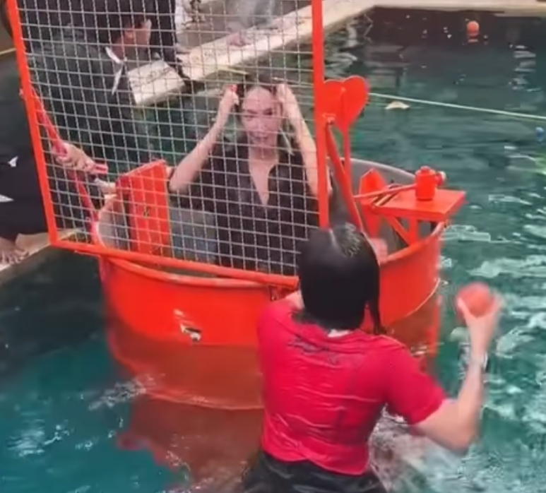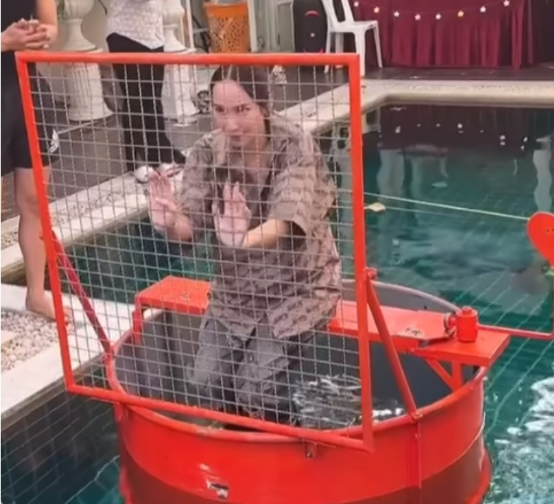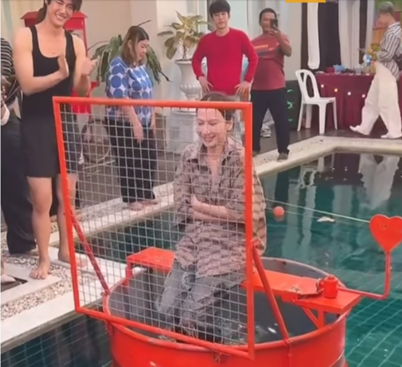 นอกจากของขวัญสุดพิเศษจากพี่เอแล้ว สิ่งที่เรียกรอยยิ้มและเสียงเฮจากผู้คนในงานเป็นอย่างมากคือ อั้มยอมลงทุนนั่งเป็นสาวน้อยตกน้ำ เพื่อชิงทองหนัก 18 บาทจากพี่เอ โดยเมย์ เฟื่องอารมย์ก็ได้โพสต์คลิปนาทีประวัติศาสตร์ พร้อมแคปชันแซวเพื่อนสาว ระบุว่า “คลิปนี้หาดูยาก เพื่อทอง 18 บาท อั้มทำได้ กล้าให้ อั้มก็กล้าทำเพื่อ…(อิโมจิรูปถุงเงิน)”