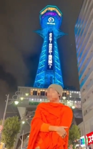 ภายในคลิปพระสงฆ์ ได้เดินทางไปเที่ยวที่ต่าง ๆ มากมายไม่ว่าจะเป็น นั่งชิงช้าสวรรค์ HEP FIVE Ferris Wheel ในเมืองโอซากา ชมวิวยามค่ำ เดินชมปราสาทโอซากา หรือ หอคอยซึเทนคาคุ