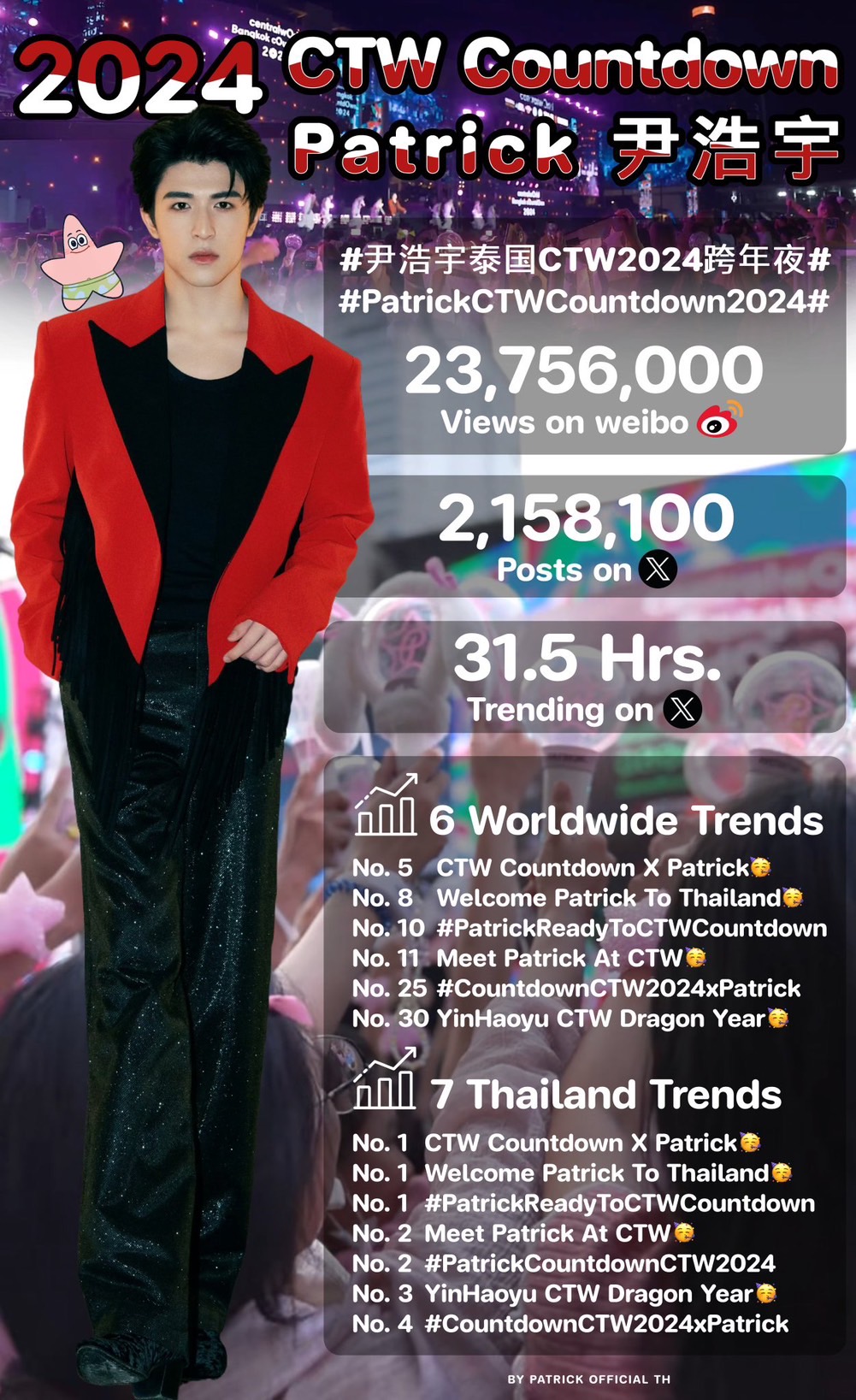 บอกเลยว่าเรียกเสียงกรี๊ดสนั่นจากแฟนๆ ทั่วเซ็นทรัลเวิลด์ แถมเจ้าปลาดาวยังร่วมพลังสร้างความปังด้วยการติดแฮชแท็ก #CTWCountdown2024 X #Patrick尹浩宇 บนโซเชียล x กว่า 2 ล้านโพสต์ ทำให้พุ่งขึ้นทั้งเทรนไทยและเทรนโลก และยังติดเทรนนานกว่า 31 ชั่วโมง รวมไปถึง Weibo ที่มียอดชมกว่า 23,756,000 Views เรียกว่าปังกันแบบข้ามปีไปเลยสำหรับหนุ่มน้อยมหัศจรรย์คนนี้ ที่ไม่ว่าจะทำอะไรแฟนๆ ก็พร้อมที่จะคอยซัพพอร์ตเสมอ
