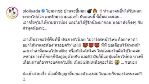 เอาเป็นว่าขอใช้พื้นที่นี้ ประกาศไว้เลย ไม่ว่าใครหน้าไหน ก็อย่าหาทำ อย่าได้มาแตะต้อง “ครอบครัว”แม่!!! ขอเตือนไว้ล่วงหน้าเลย ถ้าสามีเผลอไปกดlike หรือหัวใจให้ใคร ไม่ต้องมะโนคิดไปไกลค่ะ เพราะบางทีที่กดๆ ก็นั่งดูอยู่ด้วยกัน และIG มันก็มีแค่ปุ่มเดียวให้กด บางทีเลื่อนผ่านก็อาจจะแค่กดไปงั้น เน็ต5Gมันเหลือๆ อะโน๊ะ … จบนะ!! ปล.ถ้าสวยจริง ต้องมีปัญญามี ผ.ของตัวเองค่ะ ไม่แอบกินของใครนะคะ?!