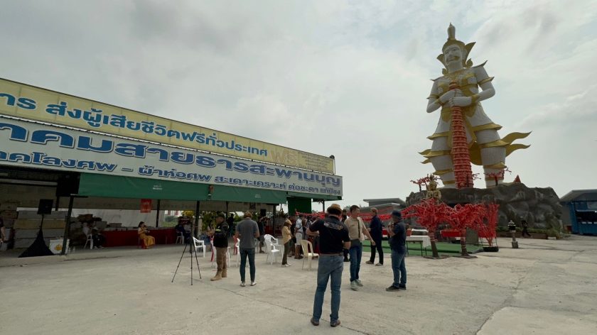 นายจักรกฤษณ์ หรือ ปอนด์ ส่งศพฟรีทั่วไทย ได้กล่าวว่า เกี่ยวกับประเด็นดังกล่าว ว่า ตนเองในฐานะผู้ก่อตั้งสมาคมสายธารสะพานบุญ และ ผู้จัดสร้างรูปปั้นองค์ท้าวเวสสุวรรณองค์ใหญ่ที่สุดในโลก โดยเริ่มต้นเมื่อประมาณ 4 ปี ที่ผ่านมา มีวัตถุประสงค์เพื่อช่วยรับส่งศพฟรีทั่วไทย เมื่อเกิดเรื่องราวขึ้น จึงจำเป็นต้องออกมาชี้แจงเรื่องราวที่เกิดขึ้น เพื่อให้ประชาชนได้รับทราบความจริง โดยเริ่มต้นจากการขอเช่าที่ดินผืนดังกล่าว เนื้อที่ 365 ตารางวา ทำสัญญาเช่าเดือนละ 15,000 บาท มีการพูดคุยกับตัวแทนเจ้าของที่ดิน ที่มีการเสนอราคาซื้อขายกันประมาณ 6 ล้านบาท