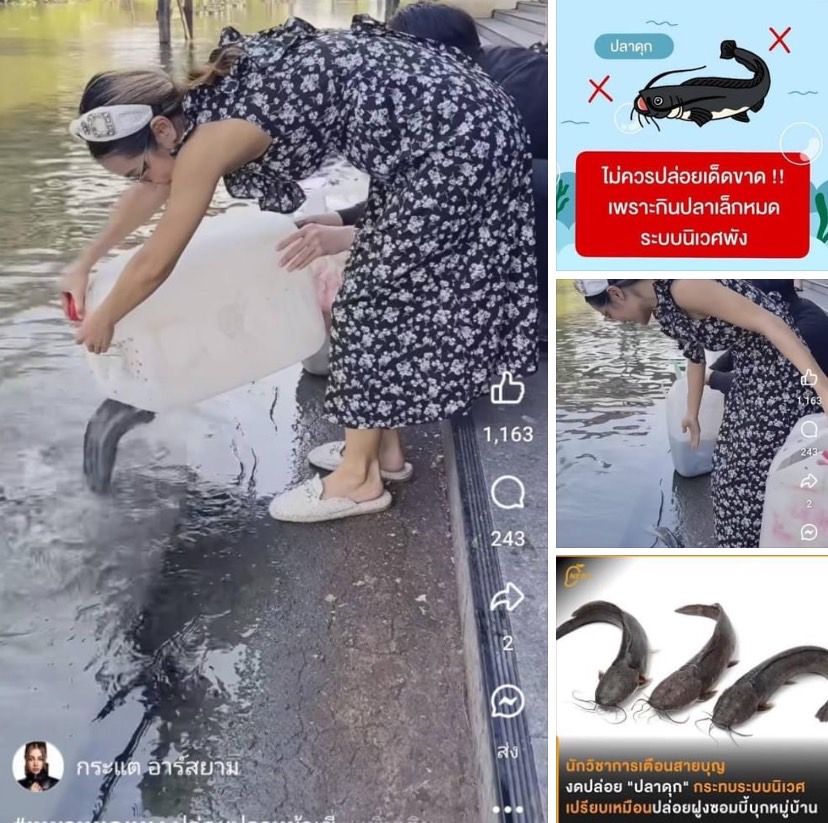 แต่เกรียนแอบเห็นว่า 1 ในปลาที่พี่กระแตปล่อย คือ ปลาดุก ซึ่งเป็นตัวทำลายระบบนิเวศน์ ปล่อยไปแล้วมันจะไปทำลายสัตว์น้ำท้องถิ่นสายพันธุ์อื่น