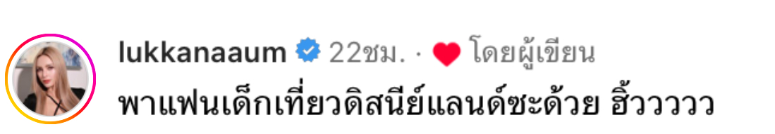 พร้อมแคปชั่นว่า “รถรายังมีล้อ แต่ถ้าเธอท้อยังมีเรานะ” งานนี้ อุ้ม ลักขณา ก็ได้โผล่เข้ามาคอมเมนต์ว่า “พาแฟนเด็กเที่ยวดิสนีย์แลนด์ซะด้วย ฮิ้ววววว”